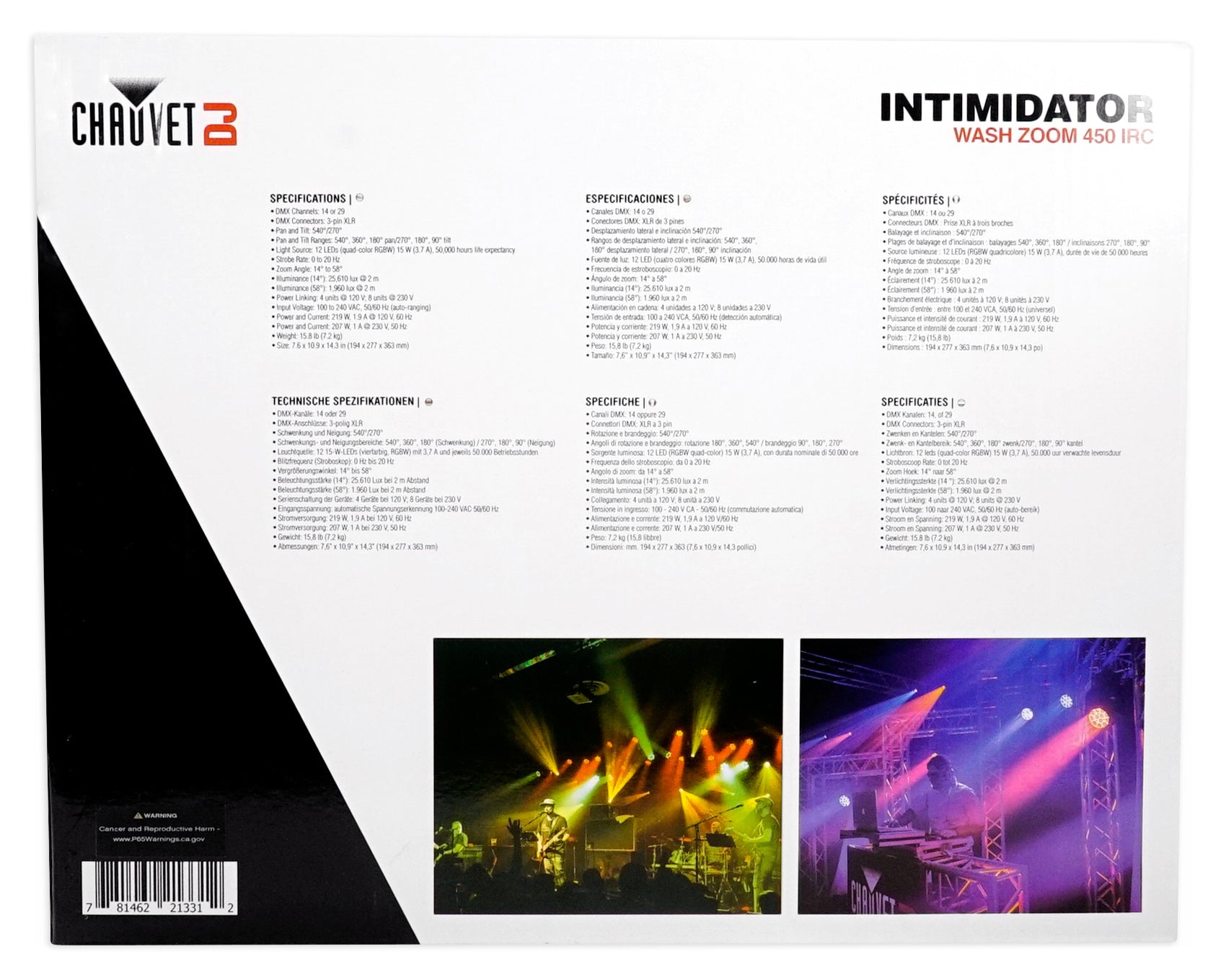 • Chauvet Intimidator Wash Zoom 450 IRC RGBW Moving Head Wash Beam LED DMX Light