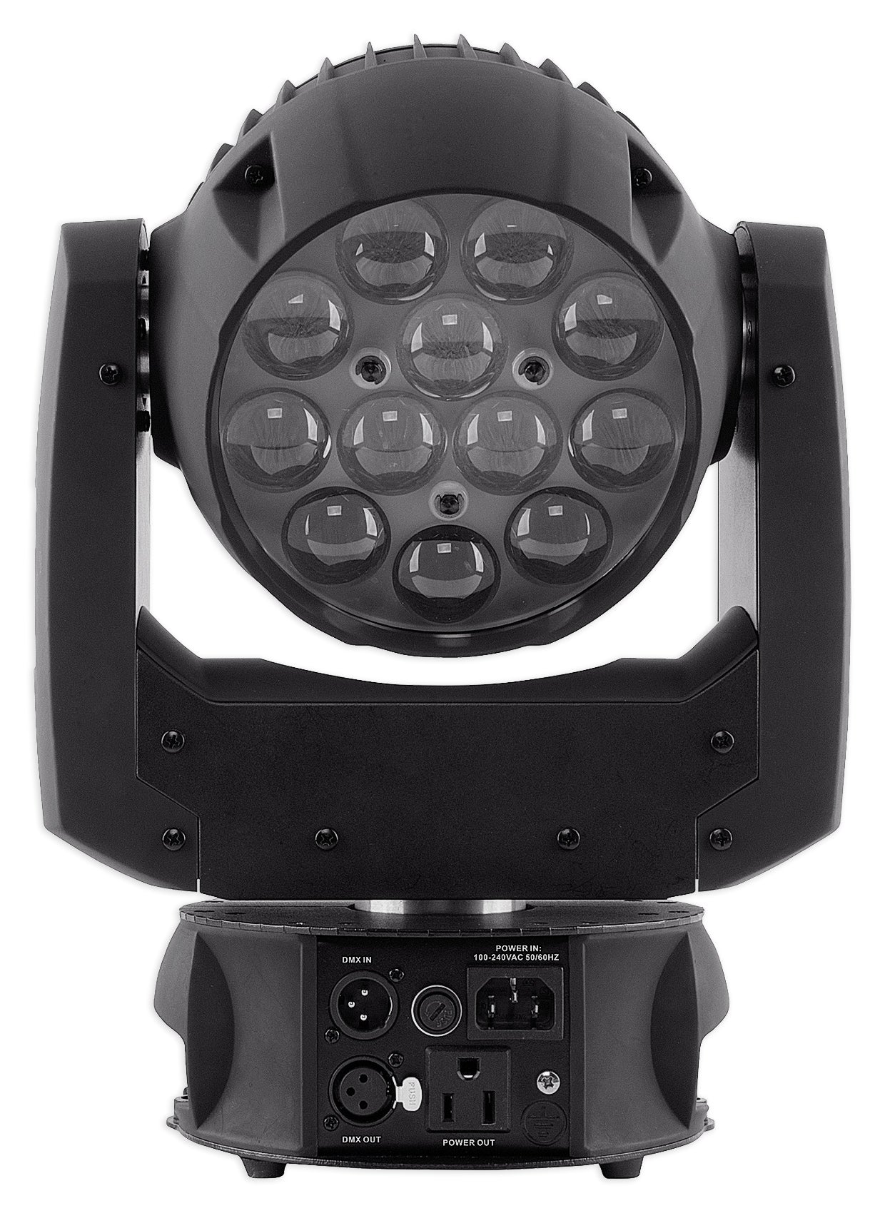 Intimidator Wash Zoom 450 IRC is a powerful moving head wash fitted with twelve 15 W quad-color RGBW LEDs and a motorized zoom for short-throw or longthrow applications. Other convenient features include a Totem mode that keeps beams aimed at the dance floor and eye-catching auto programs with zone control. Wireless (non-DMX control is possible using the optional IRC-6 remote. Up to four fixtures can be linked to create synchronized shows in automated, sound and master/slave modes.