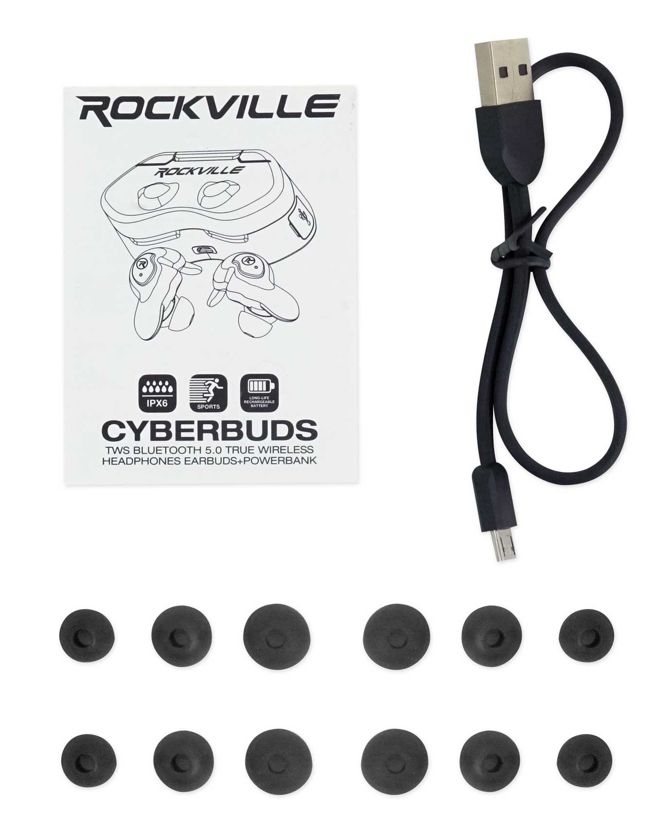 - Rockville CyberBuds TWS Bluetooth 5.0 True Wireless Ear Buds + Powerbank