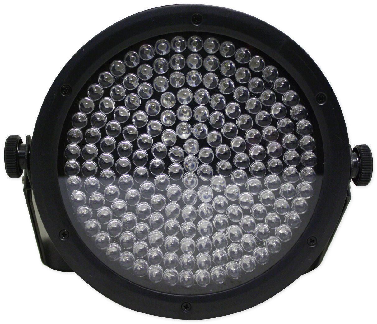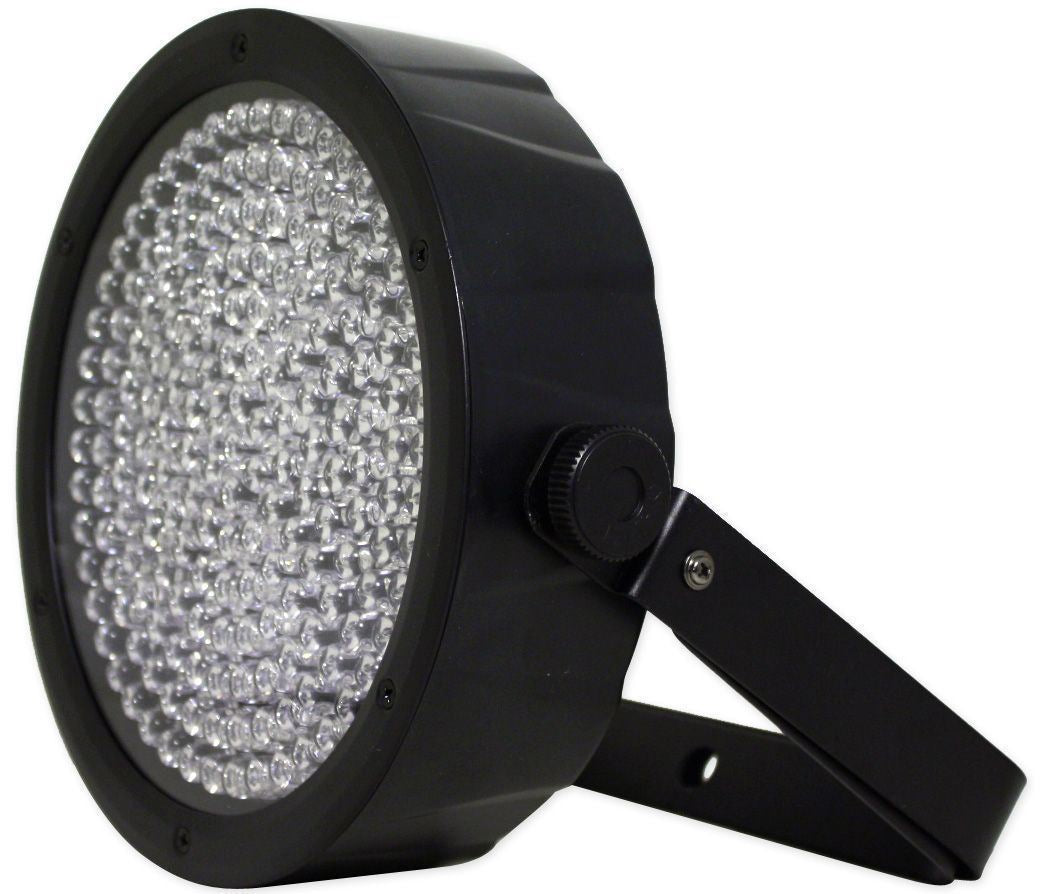 It’s an LED PAR 64 with a slim casing—only 2.5 inches thick—that can go almost anywhere. Boasting 180 red, green and blue LEDs, the fixture offers 3- or 7-channel of DMX control. Or you can use its built-in automated and sound-activated programs and variable speed-pulse effect for use on the fly. It also offers static colors and RGB color mixing with or without DMX and built-in power linking for quick set up and break down.