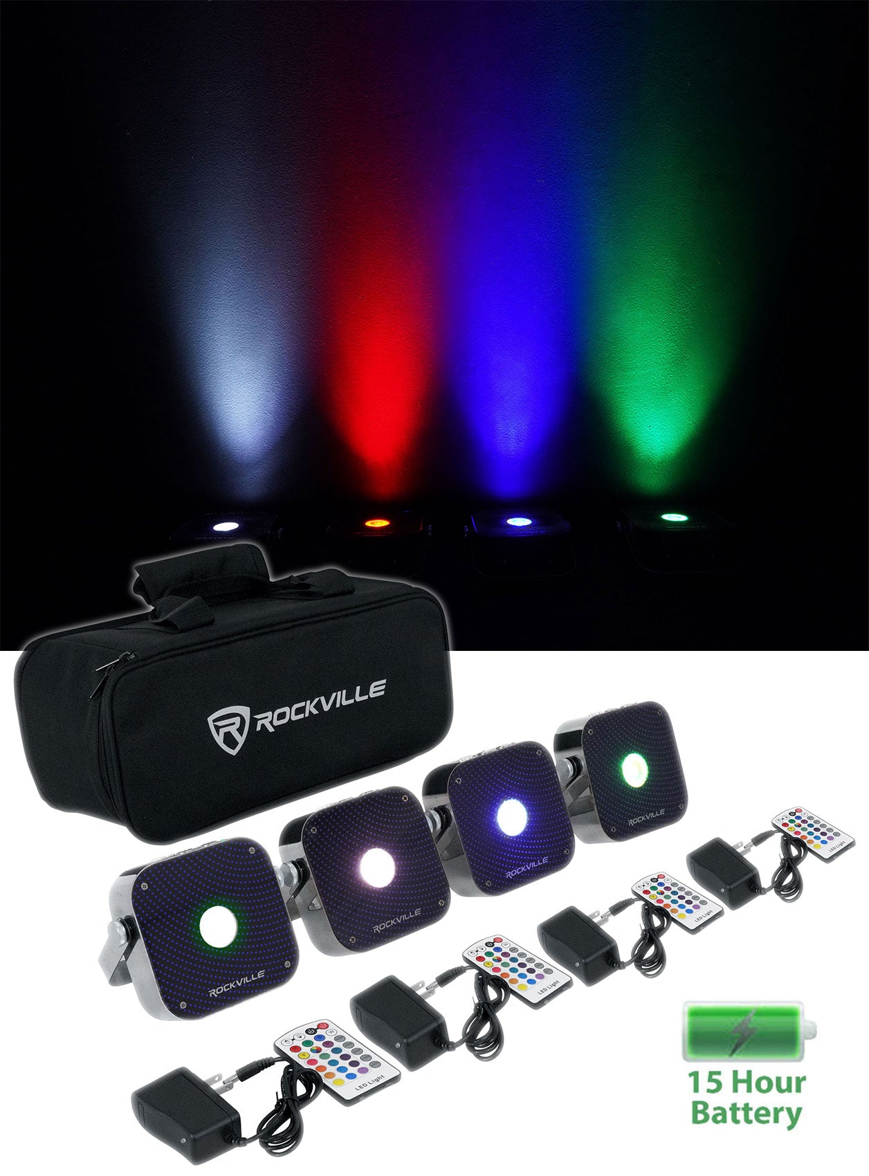Rockville 4 PACK MINI RF1 RGBWA+UV DJ/Party Wash Lights+Bag+RF Long Range Remote
