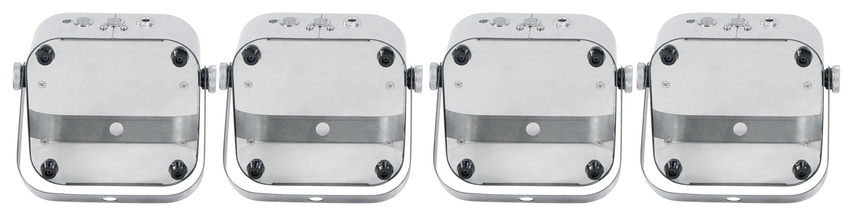 This bundle includes 4 of our MINI RF1 lights and a high quality travel bag. The Mini RF1 is a mini wash light that features a built-in rechargeable battery, RF Remote Control, dimmer controls, strobe effect, sound activated mode, and color mixing.