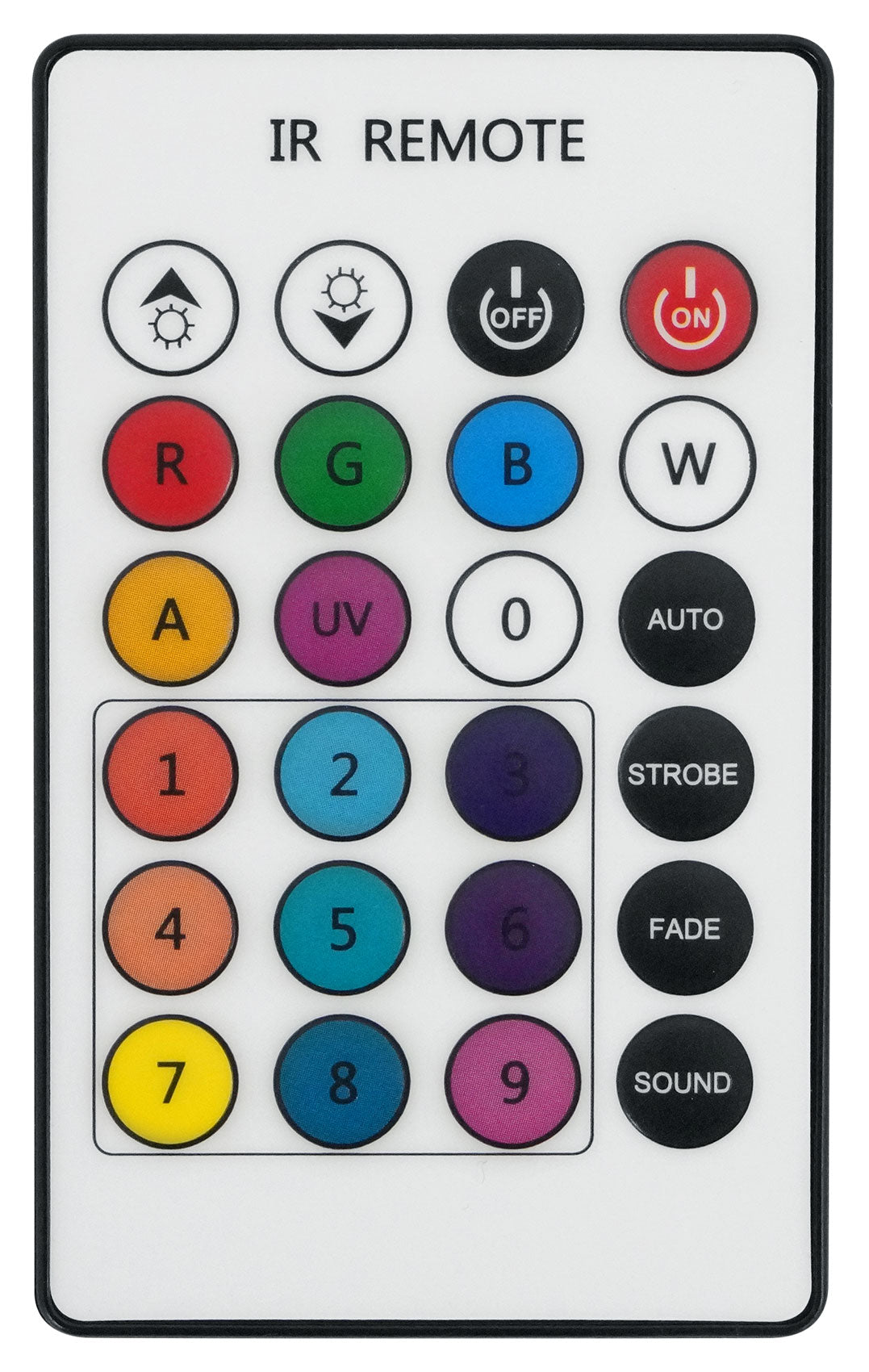 2.RGBWA+UV - This is a huge upgrade to normal RGB lights. Regular RGB lights can combine red, green, and blue to create lots of colors. This light adds White, Amber, and UltraViolet. Each of the LED’s on this light are RGBWA+UV. That means every LED can change any color allowing you to color mix and get the most vibrant and precise colors. That also means any color you choose will be way brighter.
