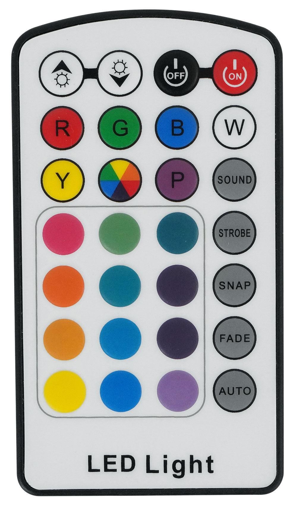 1. RF remote – Our RF remote technology allows you to control the color, mode, and other functions of the light from ranges of 50-100 feet. What is really cool is you can use one remote and control multiple lights. For example you might have 24 lights throughout a party room and you take this remote and hit blue and all the lights will react from one click! Our RF technology has another really cool feature. Lets say you want to have every other light alternate colors. Our lights each have a setting for RF channel. You can have 2 groups of lights, and then from the remote you can go to RF channel A and change all the lights on that channel with one click, and then you can go to RF channel B and change the remaining lights from there.