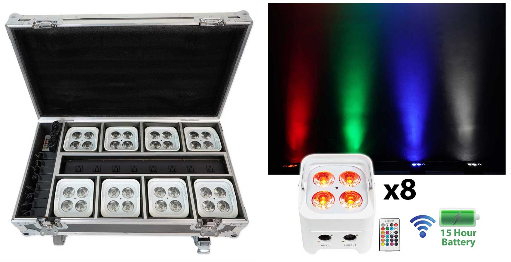 Rockville BEST PACK 50 (8) White Battery Wash Lights+Wireless DMX+Charging Case