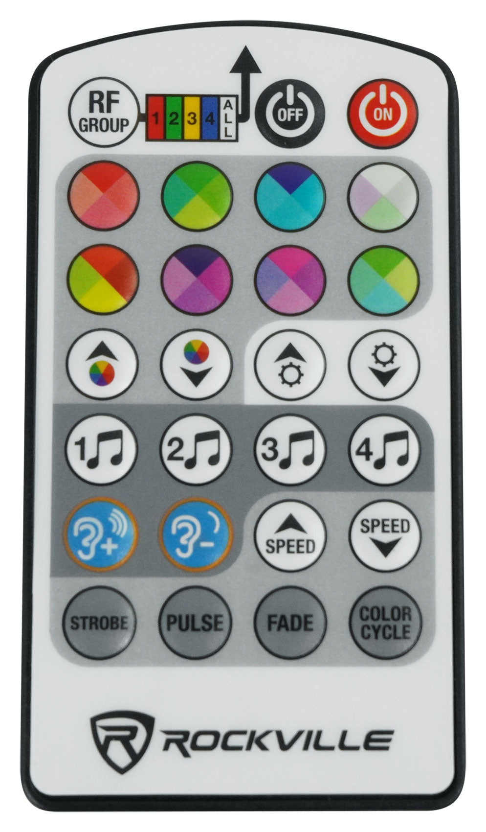 • 8 color wheels on the remote each with 4 sub-colors