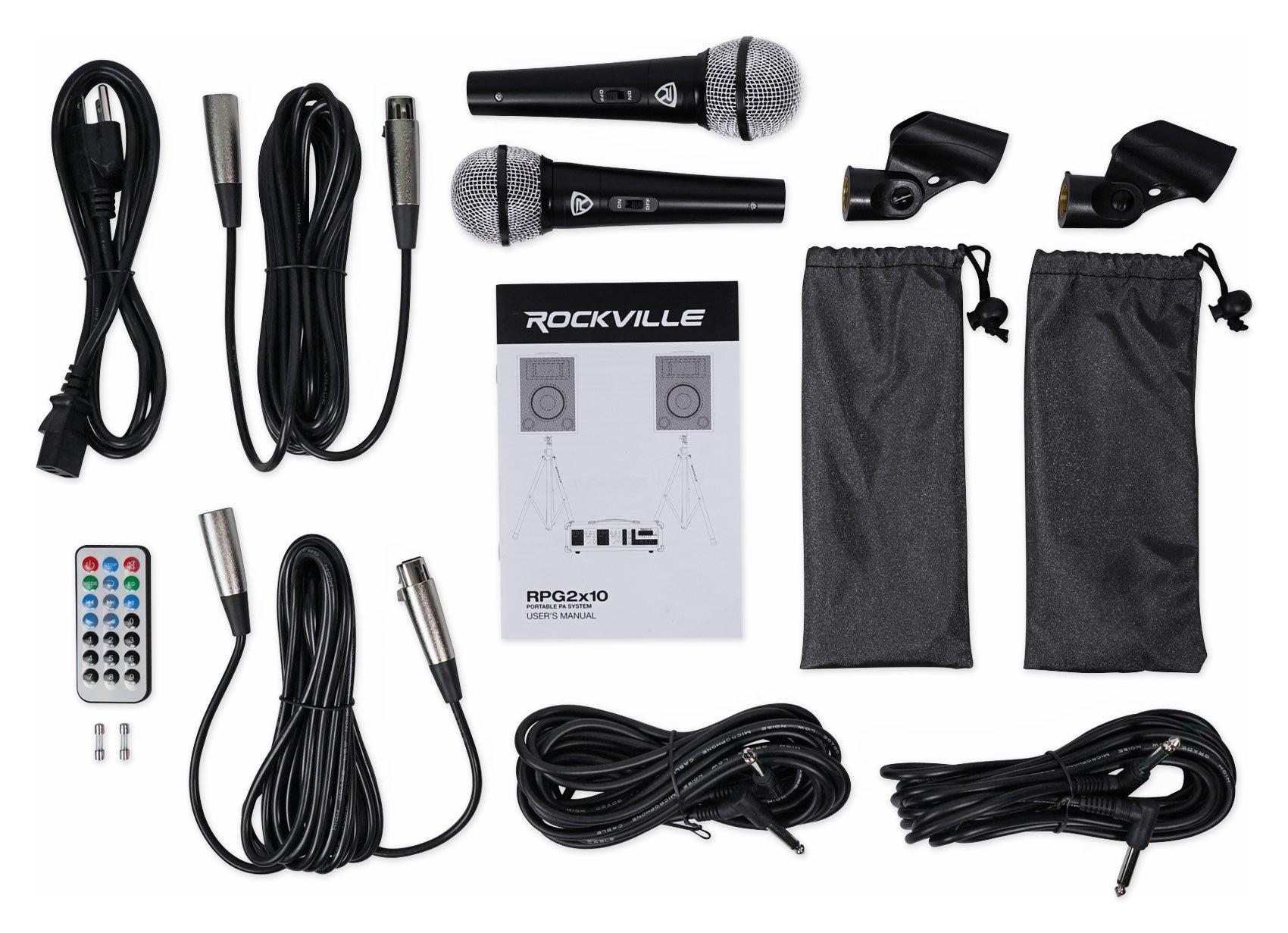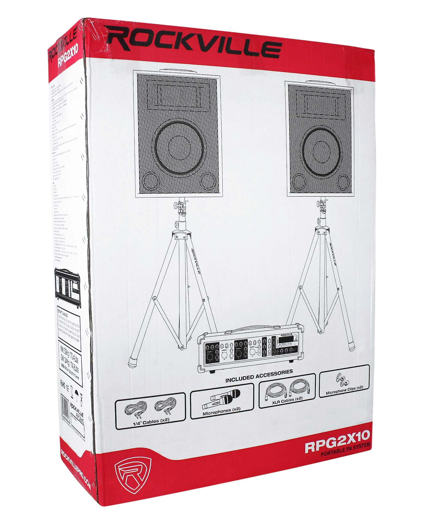- Rockville RPG2X10 V2 Package PA System Mixer/Amp+10 inches Speakers+Stands+Mics+Bluetooth