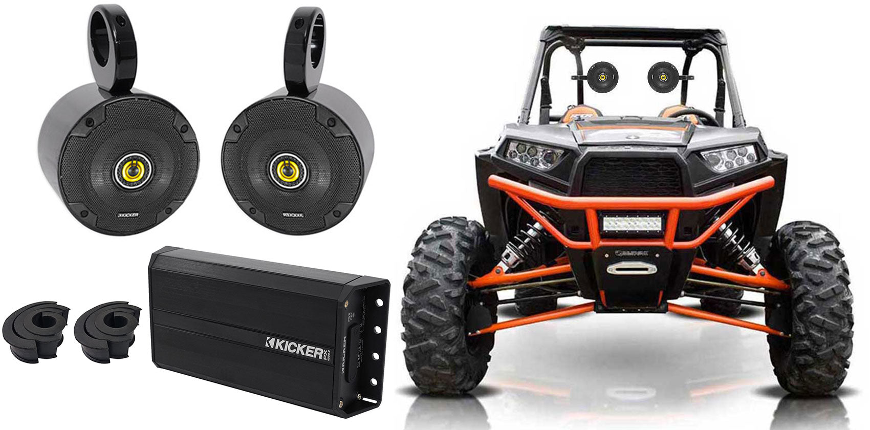 2 Kicker 5.25" Tower Speakers+2-Ch. Kicker Amp for Polaris/JEEP/ATV/UTV/RZR/CART