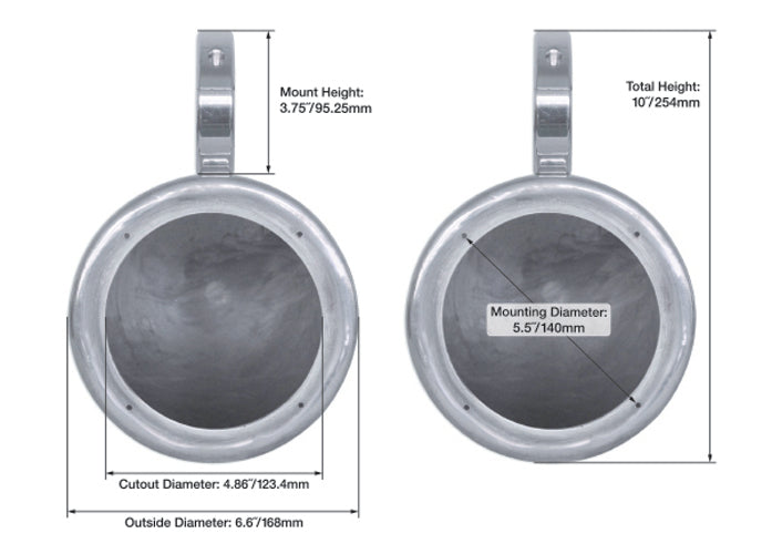 Rockville is proud to introduce our all new line of aluminum wakeboard cans. The MAC525B comes in pairs and includes our rugged universal aluminum clamp for easy installation to any wakeboard tower pole.  6 precision molded high impact rubber inserts guarantee fitment on towers from 1.75” to 2.5”. Our clamp inserts are precision-fitted to sit perfectly inside the metal clamps. The speaker terminals are safely enclosed inside the waterproof speaker canister.