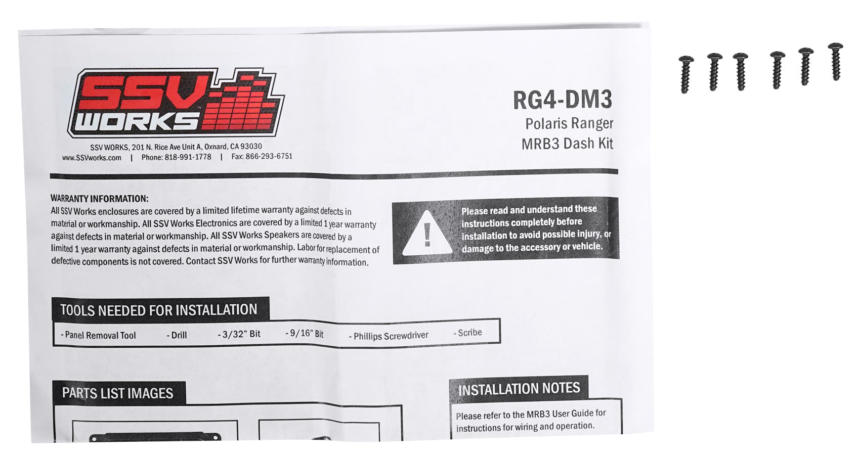 Add a SSV Works MRB3 Bluetooth Media Controller to your Polaris Ranger XP1000 2018+ without any cutting required! The RG4-DM3 Dash Kit has been designed and engineered specifically to fit the SSV Works MRB3 unit. The kit seamlessly mounts to the top center of the dash and perfectly matches the factory color and texture to the rest of the Ranger interior.