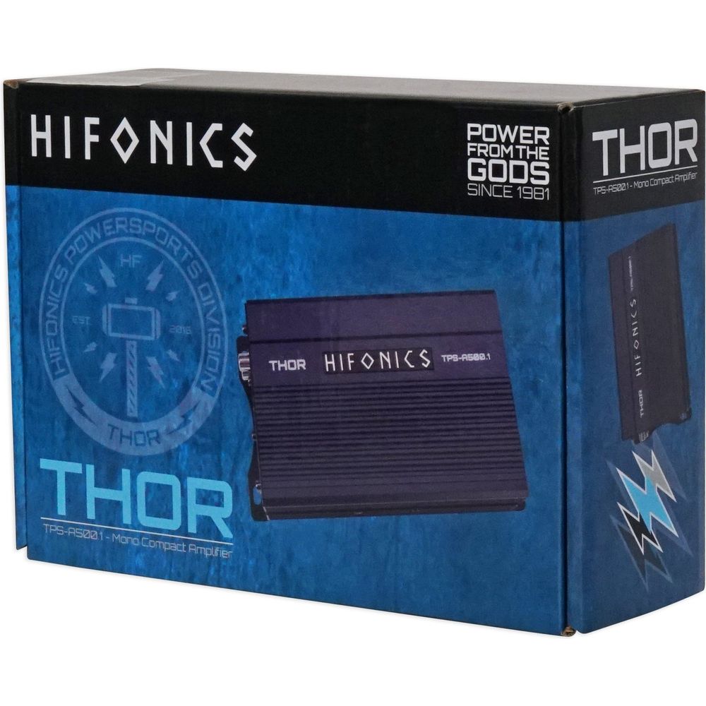 Hifonics THOR compact 500 watt mono Powersports amplifier to for a subwoofer with on-board equalization and simple instalation with quick release connectors.