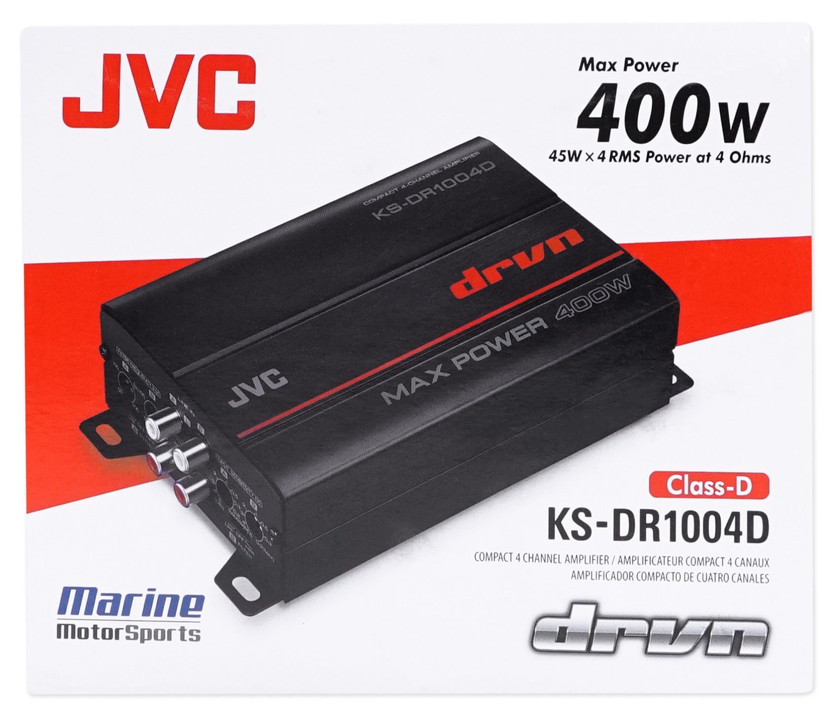 JVC KS-DR1004D 400 Watt 4-Channel Marine Amplifier For Polaris RZR/ATV/UTV/Cart