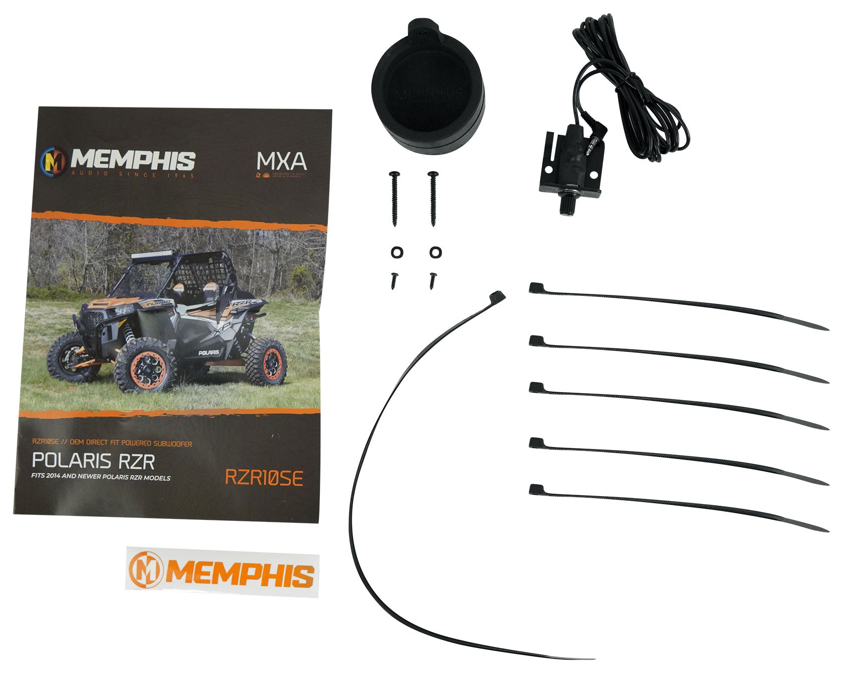 Memphis Audio direct fit OEM Powered 10” subwoofer enclosures fit directly into your vehicle with zero custom fabrication required. The HDPE rotomolded subwoofer enclosures is extremely durable and tuned for maximum output and performance. The enclosure has a built in marine grade amplifier designed to pair perfectly with the 10” subwoofer to produce thunderous bass on the trails. RZR powered subwoofer enclosures are the best way to add a subwoofer to your Polaris RZR.