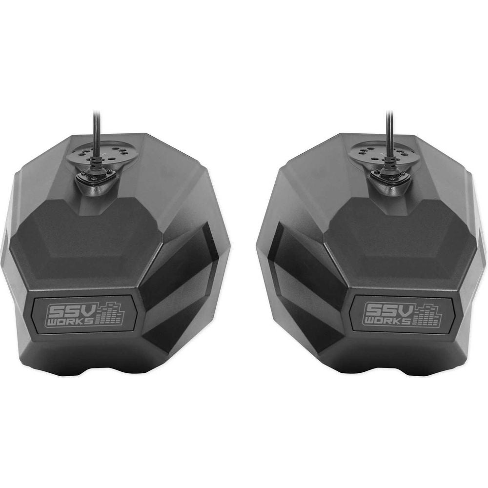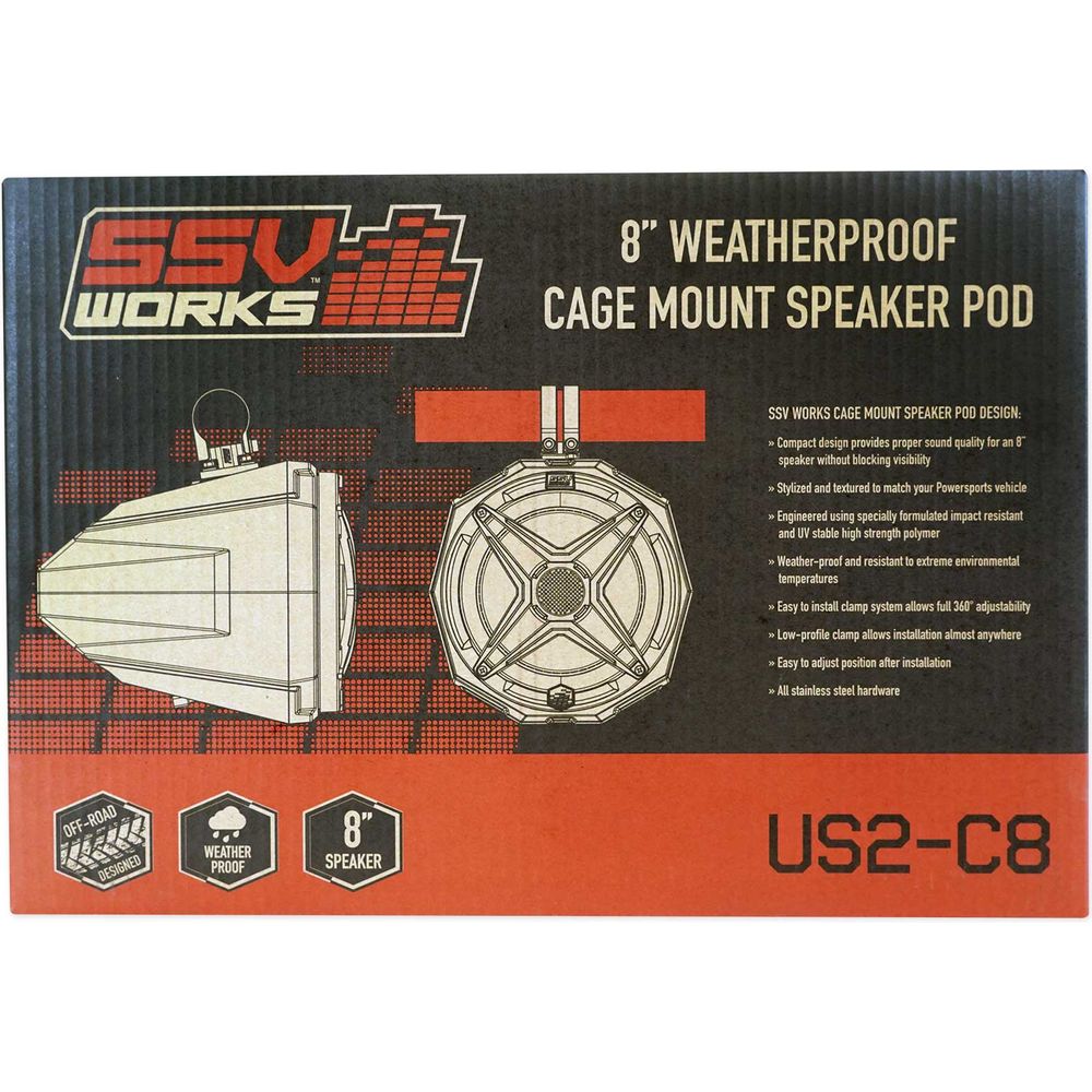 Expand your audio system by adding 8" speakers to your UTV's cage. These enclosures were carefully designed to help resemble the looks of your UTV. Most competitive cage pods offered in the market today are a boat enclosures painted from white to black and has a high gloss finish to resemble other parts of the boats aesthetics.. That approach does not translate well in the UTV market as most neighboring parts to the Cage pods are often a powder coated matte black or textured black plastic finish.