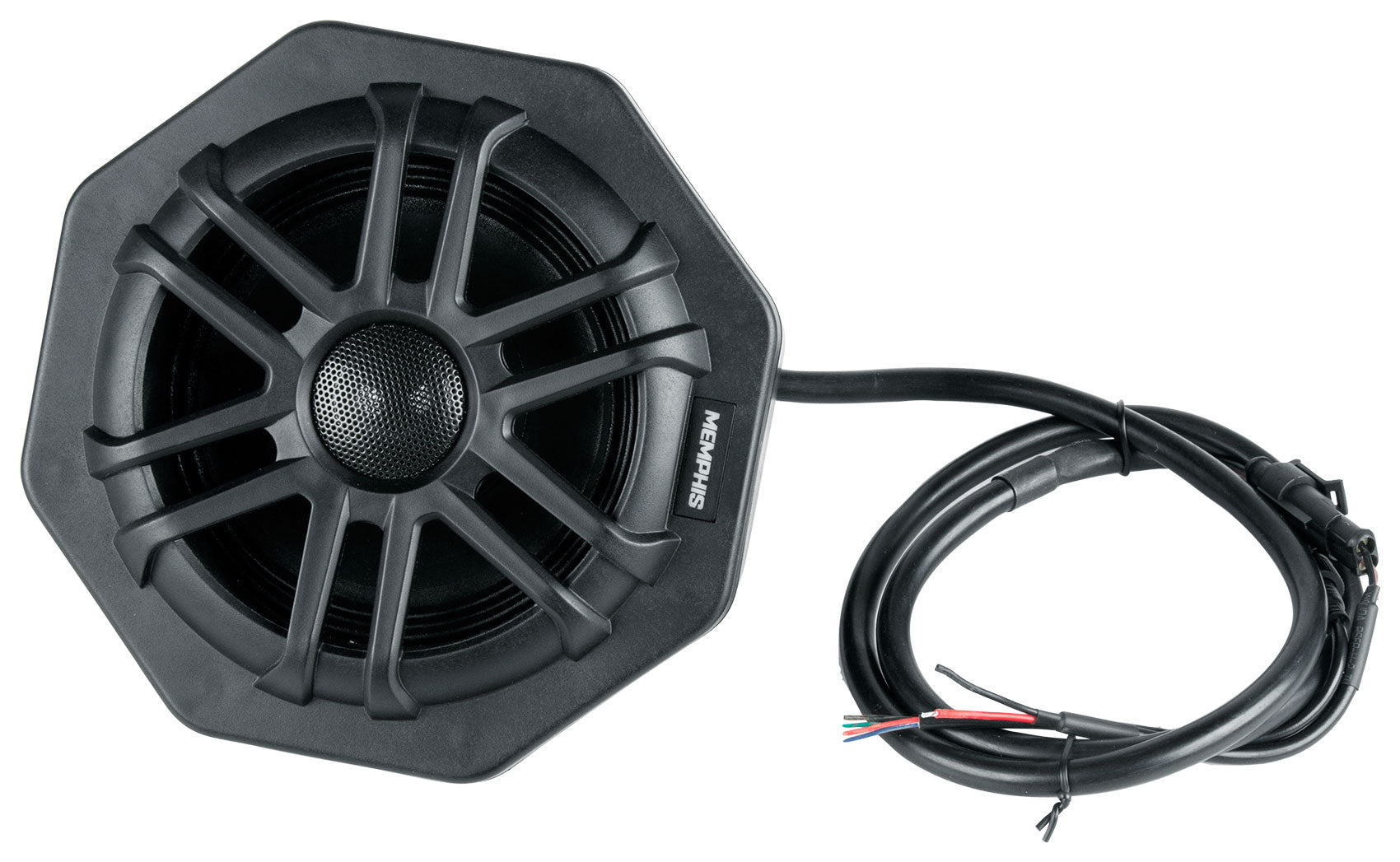 Memphis Audio direct fit OEM speaker pods are designed to fit directly into your vehicle with zero custom fabrication required. Lightweight durable injection molded polypropylene speaker enclosures are tuned for maximum output and feature RGB LED lighting which illuminates the speaker cone, Memphis badge and provides down lighting making your machine stand out from the crowd. All the components used in this kit are marine grade and designed to withstand water and the elements.