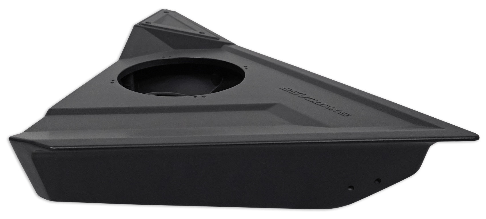 SSV Works custom molded kick panels are designed for 6.5" speakers and clamp into the frame away from your legs. They are 100% fiberglass for the best sound quality and bass response. Speaker mounting options include coaxial or component with the optional tweeter mounting plates. Fits 2016-2017 Slingshot models.