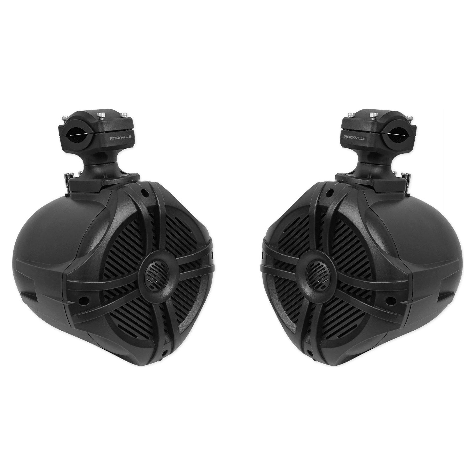 - (2) Rockville RWB70B Black 6.5" 250w Marine Wakeboard 360° Swivel Tower Speakers