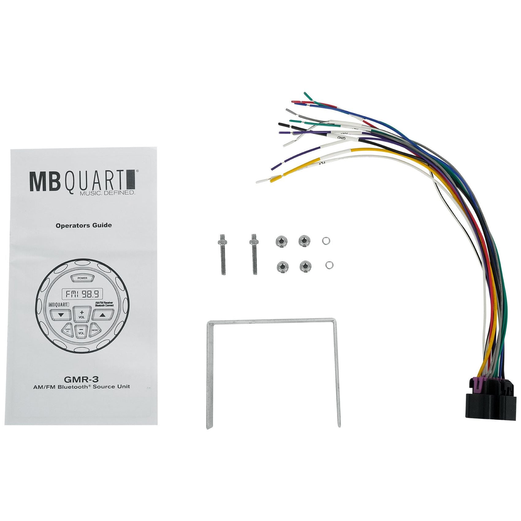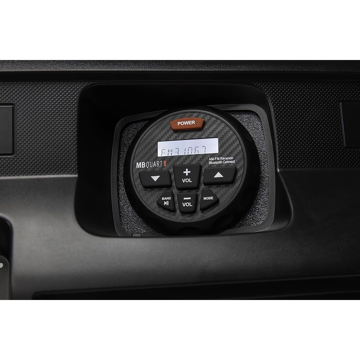MB Quart GMR-3, Bluetooth AM/FM gauge mount radio featuring Apple control which brings more control between your Apple devices. Internal 4 channel amplifier delivers 180 watts, including aux input and 4 volt pre-amp outputs.