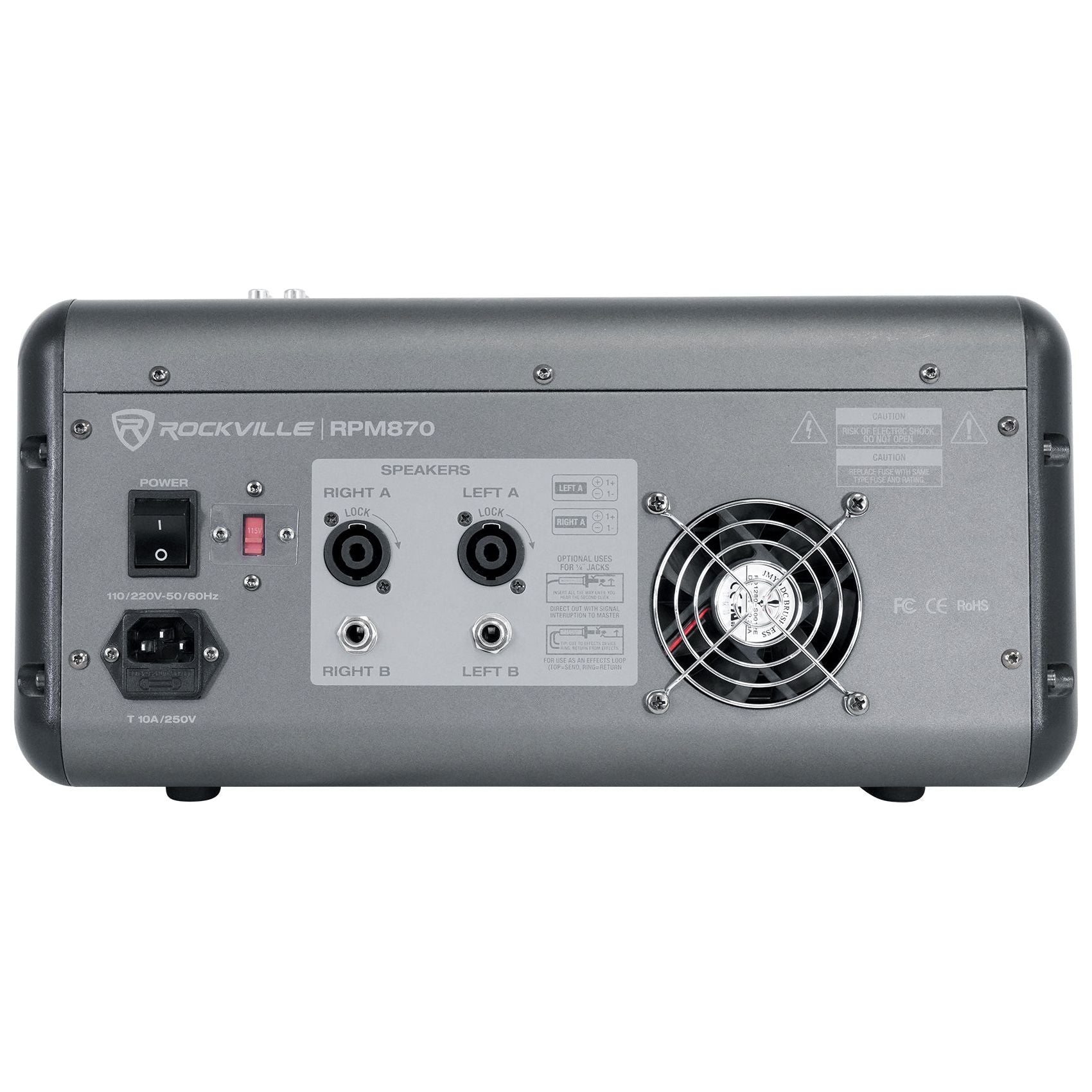- Rockville RPM870 8 Channel 6000w Powered Mixer, 7 Band EQ, 24-Bit Effects, USB, 48V Phantom Power
