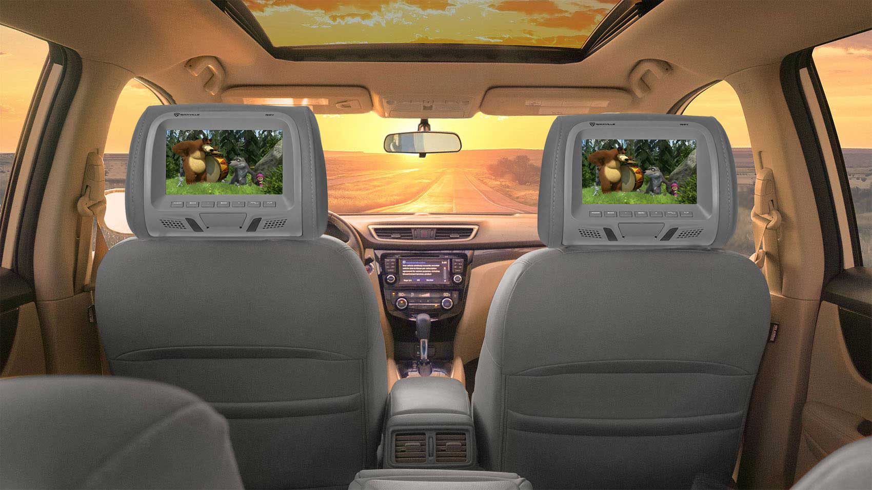 - Pair Rockville RHP7-GR 7” Grey Plug N Play Car Headrest Monitors w/ Speakers+IR