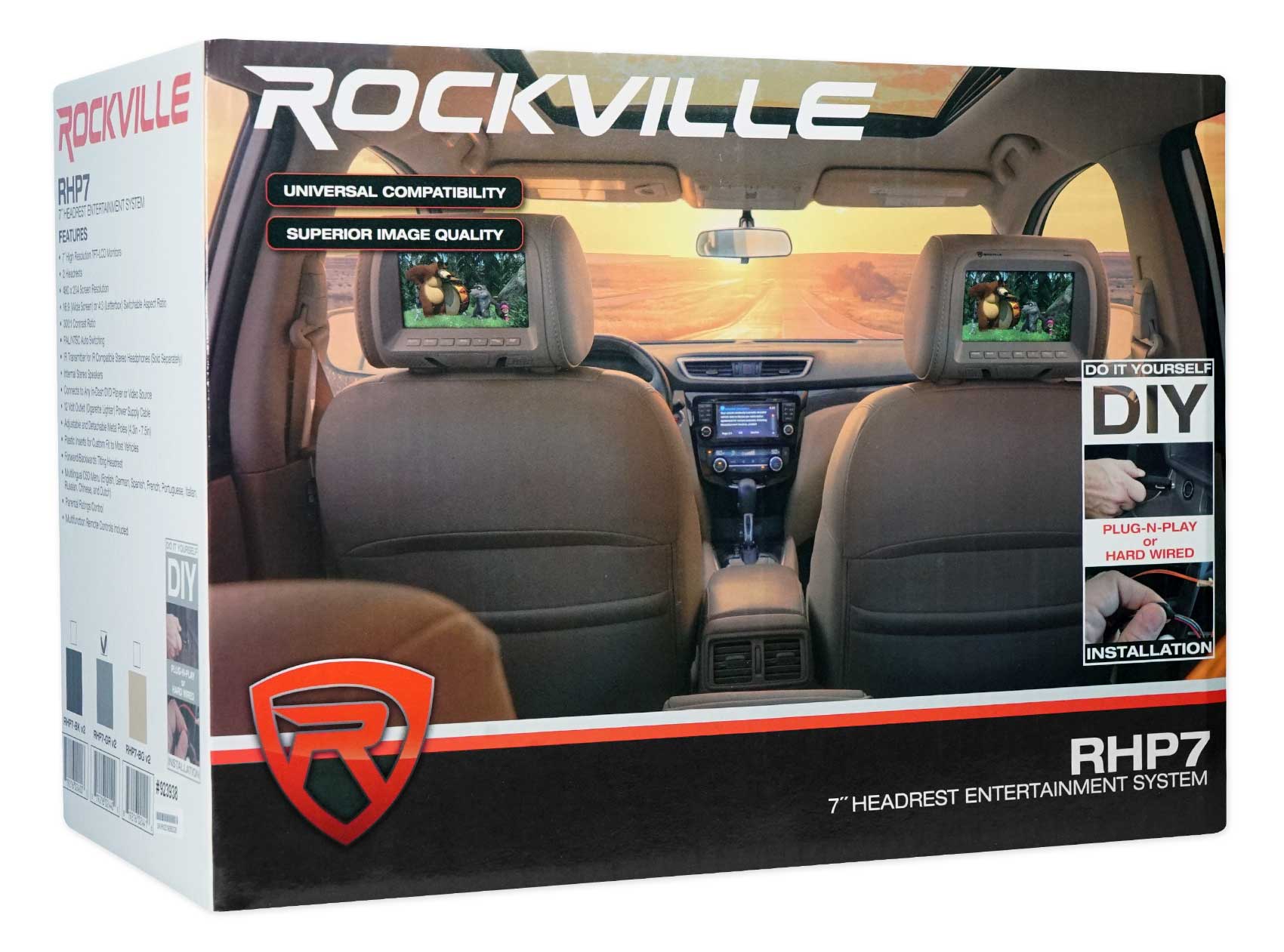 The Rockville RHP7 is a 7" pair of universal headrest monitors. These feature a universal fit system and include all the necessary parts to fit in any vehicle. It has adjustable and detachable metal poles that adjust left to right from 4.3" inches to 7.5" inches. Rockville will have you up and running and enjoying your system in almost no time. Rockville takes the rocket science out of system integration, with our detailed and easy Do-It-Yourself Instructions. (Our instructions are written so that it is easy to understand). The headrests are manufactured of high quality leatherette with a plush comfortable finish and modeled to integrate perfectly into any vehicle.