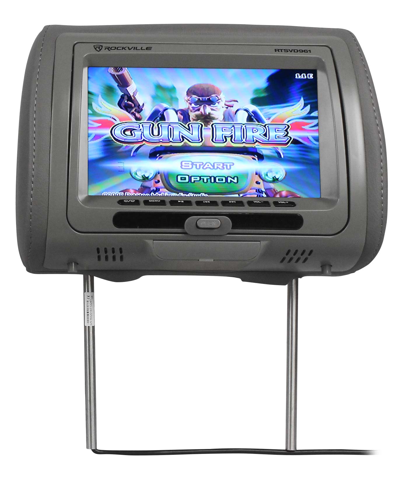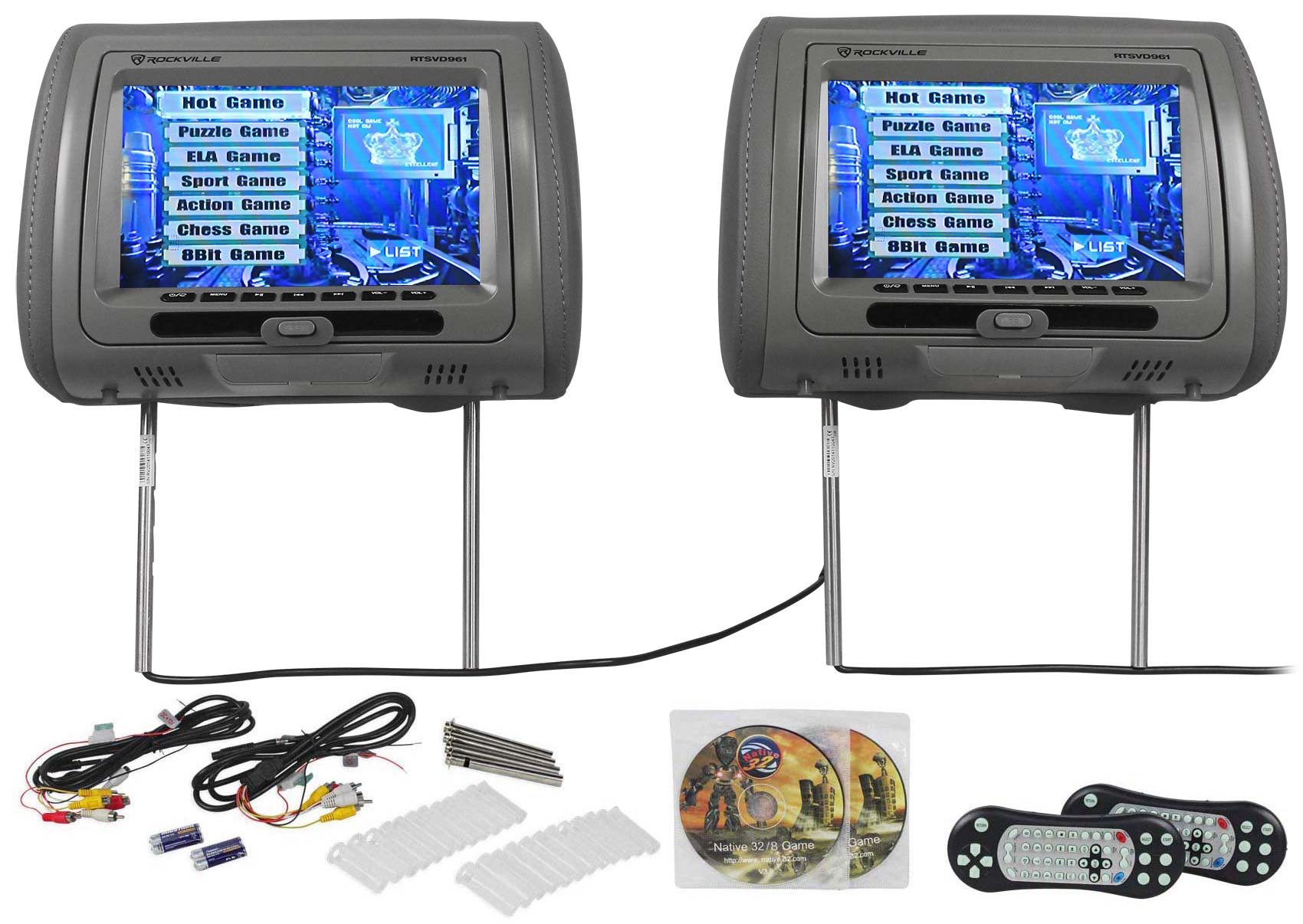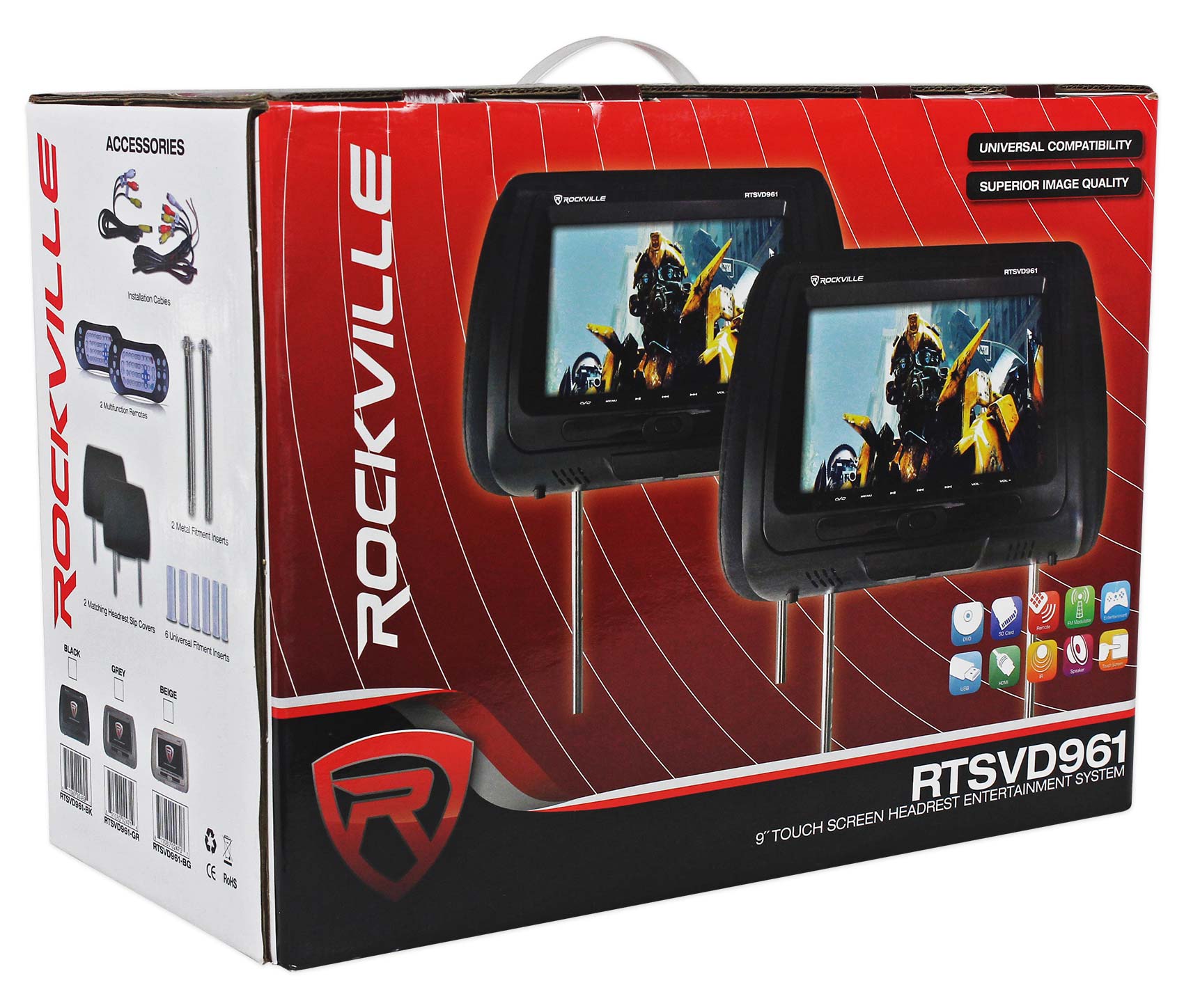 • Rockville RTSVD961-GR 9” Gray Touchscreen Dual DVD/HDMI Car Headrest Monitors