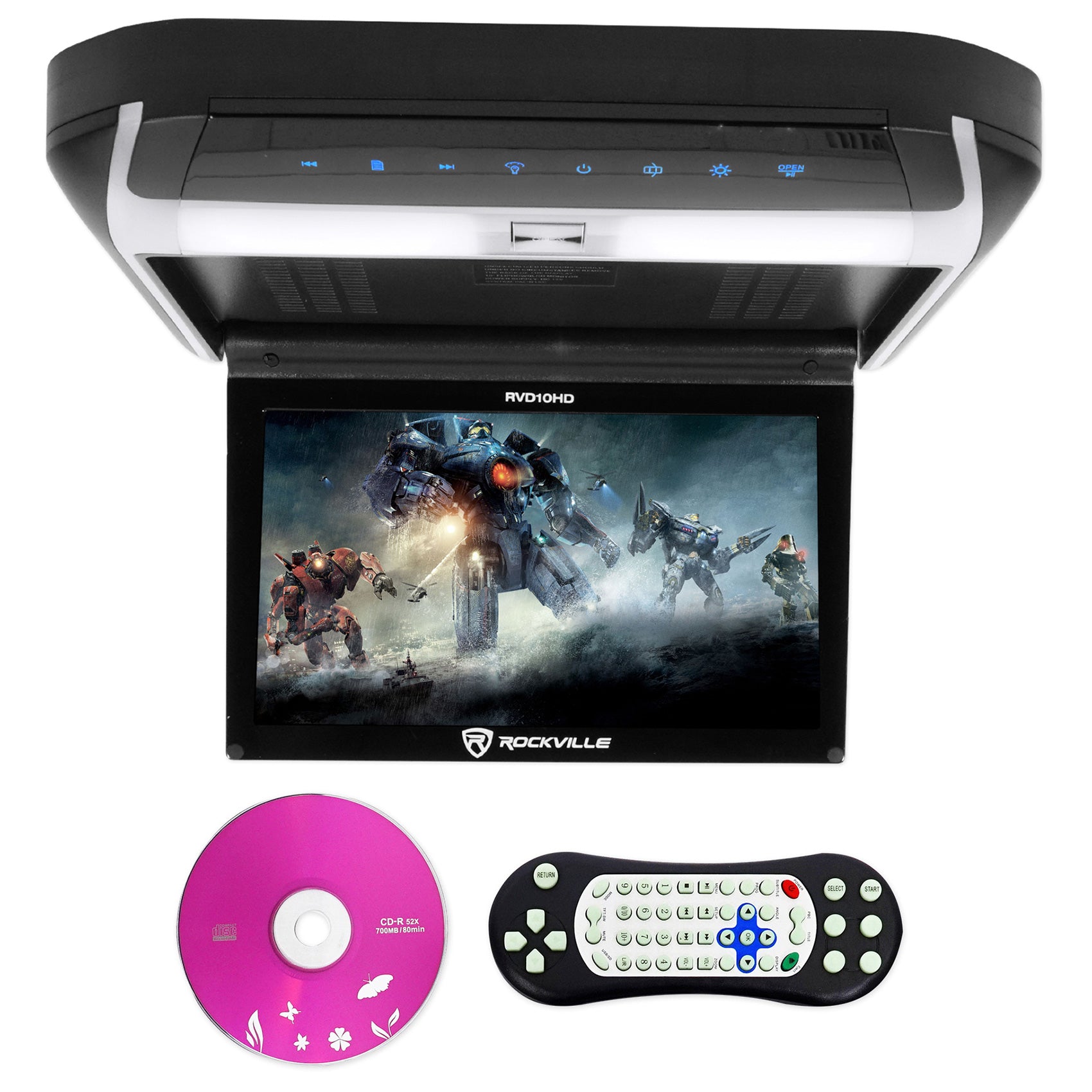 Rockville RVD10HD-BK 10.1" Flip Down Monitor DVD Player, HDMI, USB, Games,LED