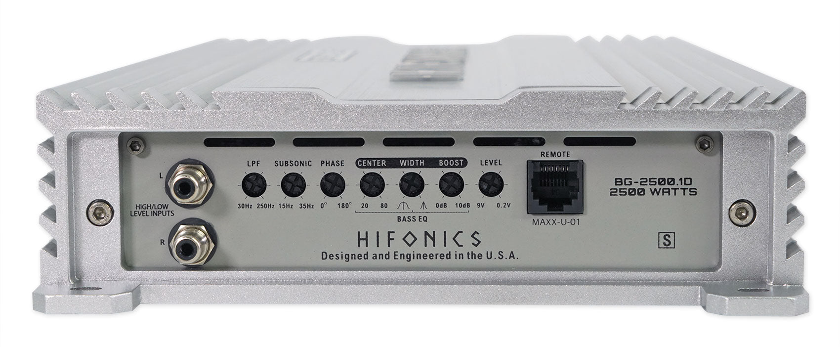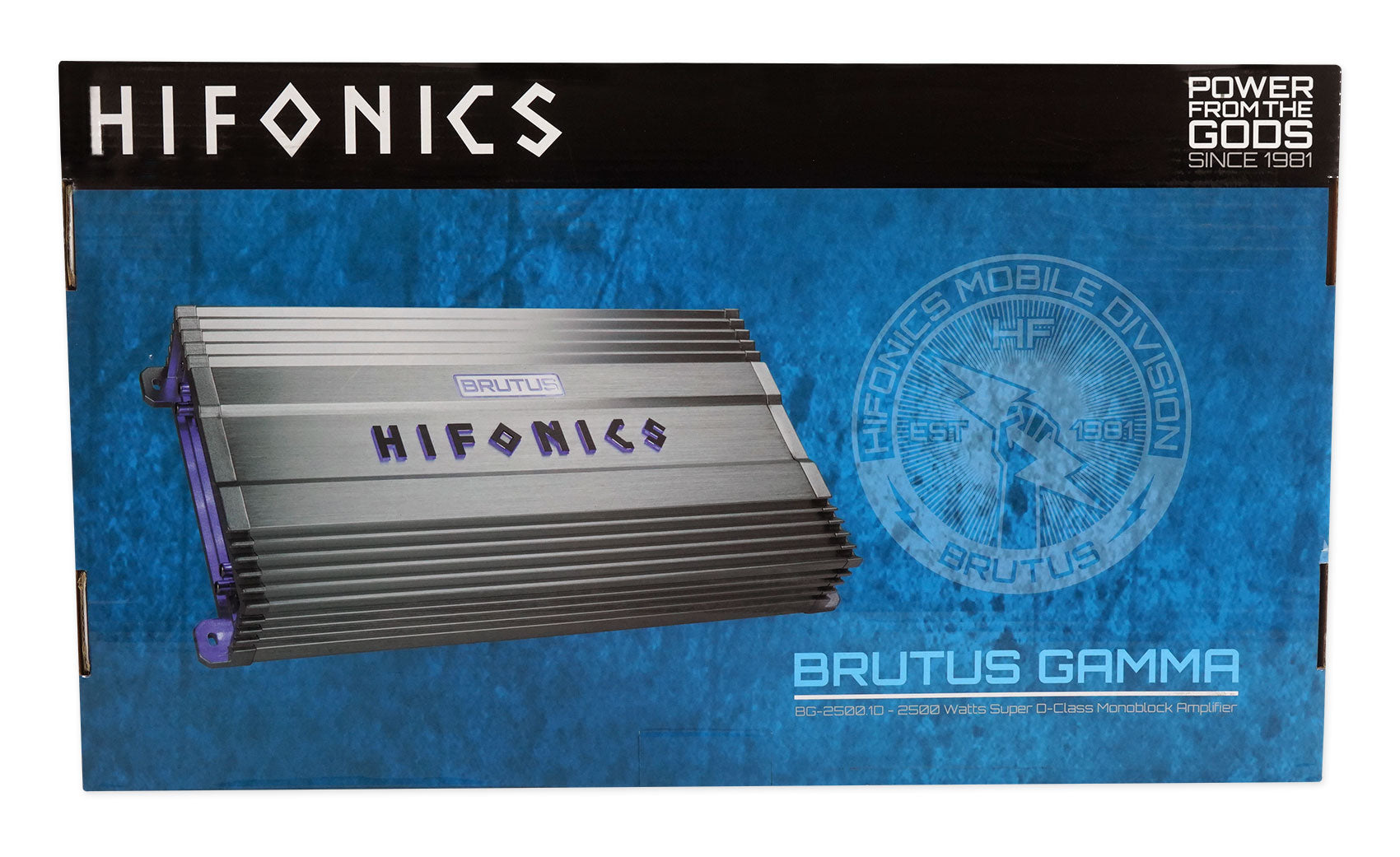 Hifonics BRUTUS Gamma Mono subwoofer audio amplifier delivers 2500 watts with Super D Class™ technology that features Ultra-Fi™ MOSFET outputs that are selected for both balance and output power.