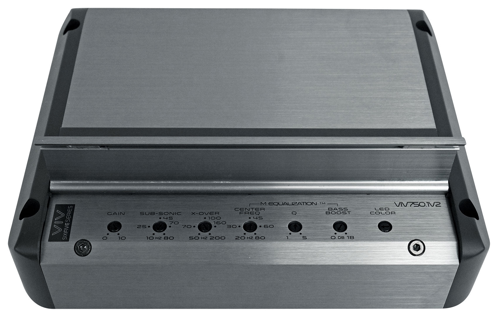 SIXFIVE Series amplifiers are hailed as the best amplifier line ever produced by Memphis. The second iteration of these amplifiers adds to their legacy with the expansion of the line offering an even wider array of models based off of the feedback from end users. All models feature a gunmetal brushed aluminum finish, a color changing RGB LED reversible top display panel and ground lighting to make any custom install shine. Even the optional wireless bass knob received a massive improvement in signal response making SIXFIVE Series amplifiers better than ever. The impressive 750 watt power output of the VIV750.1V2 is perfect for anyone needing a high powered accurate amplifier to push their subwoofers to the limit. This amplifier works perfectly with the optional VIVREMV2 wireless bass knob