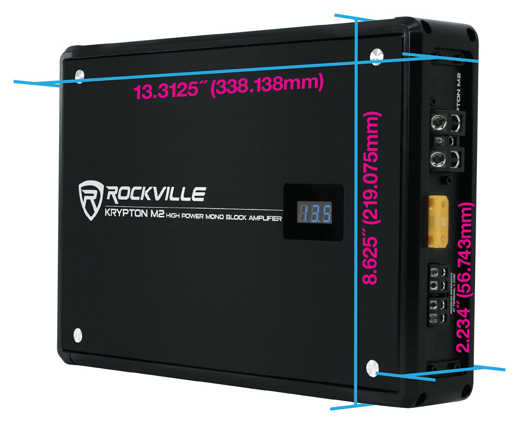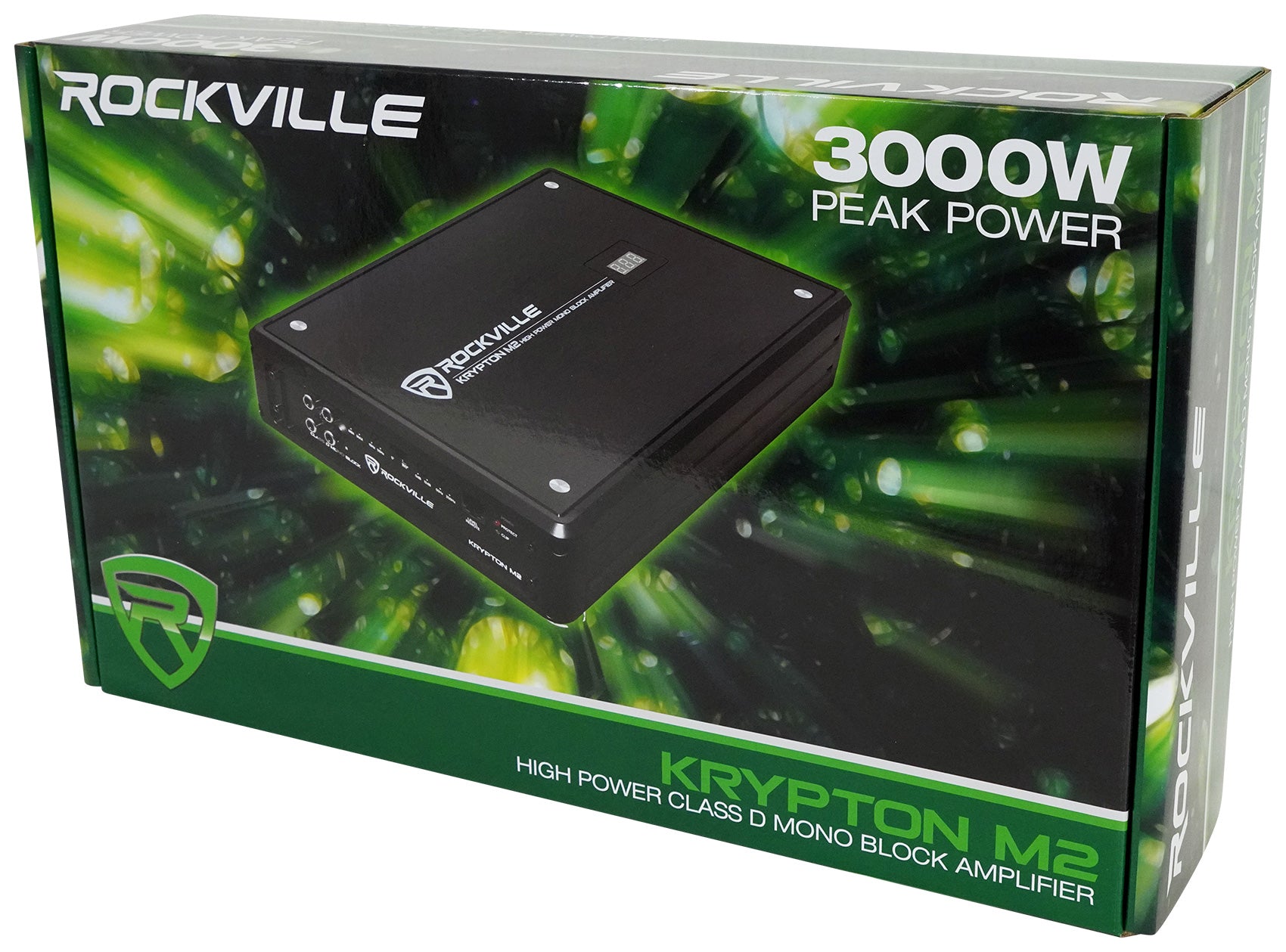 - Rockville KRYPTON-M2 3000w Peak/750w Dyno-Certified RMS Mono 1 Ohm Car Amplifier Amp+Remote