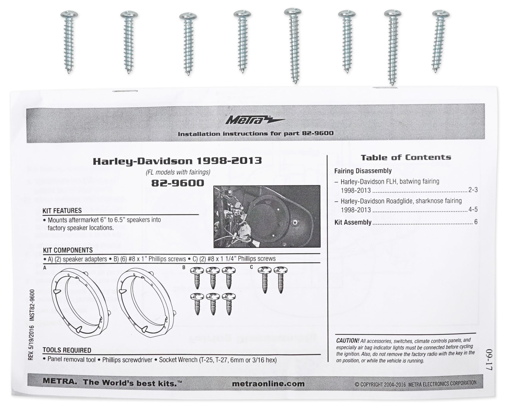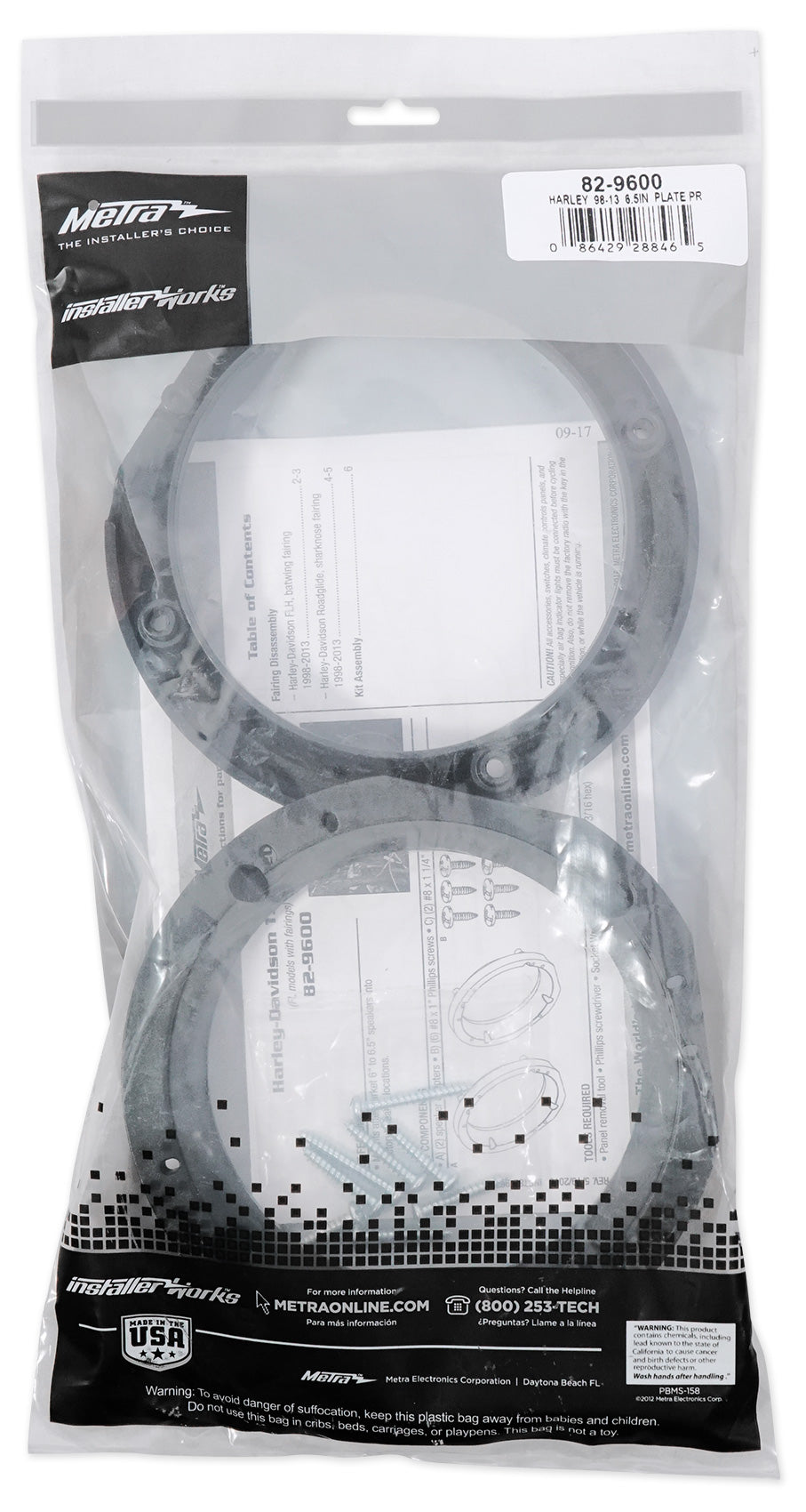 - Metra 82-9600 1998-2013 Harley Davidson Touring 6" to 6.5" Speaker Adapter Plate
