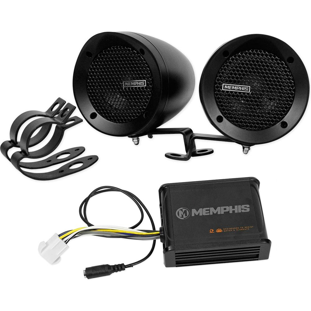 Bring huge sound to your UTV, ATV, Motorcycle or any type of all-weather machine with these bullet style powersports speakers and amplifier kit. The kit includes 2 matte black bullet-style high power speakers being pushed by a true marine grade powerful 2-channel 50(w) Memphis Audio amplifier. Each speaker features a 15 oz magnet, far superior to similar products in their class allowing these speakers to produce exceptional low-end response.