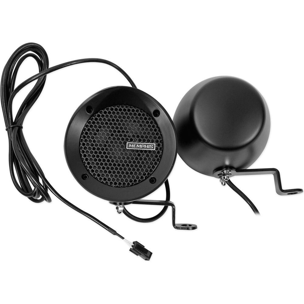 Bring huge sound to your UTV, ATV, Motorcycle or any type of all-weather machine with these bullet style powersports speakers and amplifier kit. The kit includes 2 matte black bullet-style high power speakers being pushed by a true marine grade powerful 2-channel 50(w) Memphis Audio amplifier. Each speaker features a 15 oz magnet, far superior to similar products in their class allowing these speakers to produce exceptional low-end response.