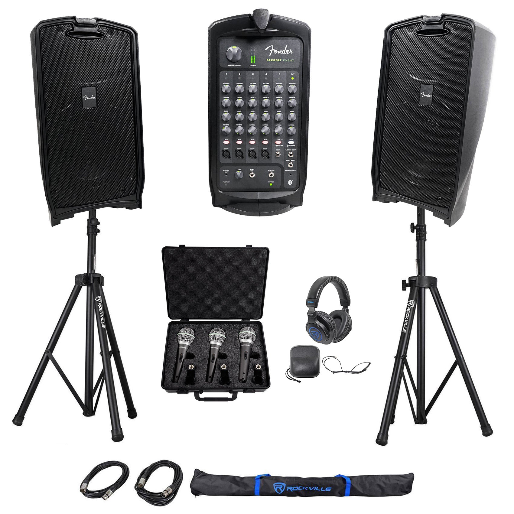FENDER PASSPORT EVENT 8" Bluetooth PA DJ Speaker System+Stands+Mics+Headphones
