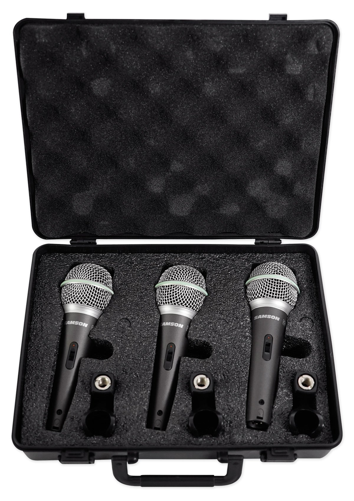 - SAMSON Q6 3-Pack Dynamic Cardioid Handheld Microphones + Mic Clips + Foam Case