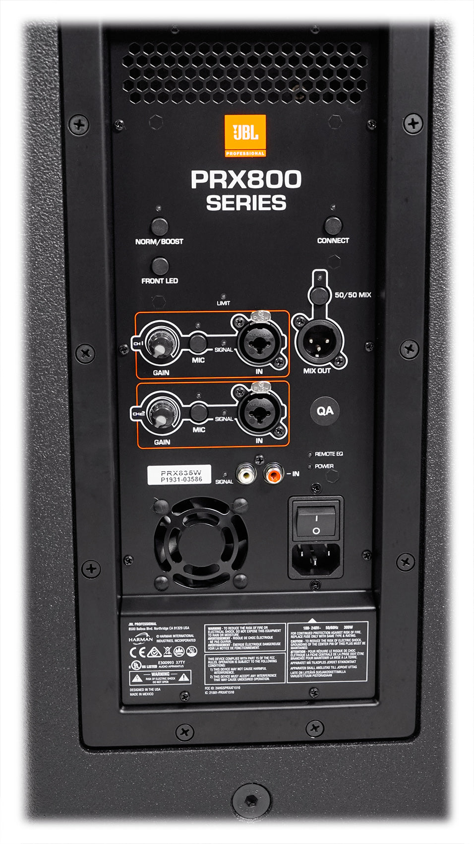Mic/Instrument level inputs. The PRX800 series integrates embedded ioSYS