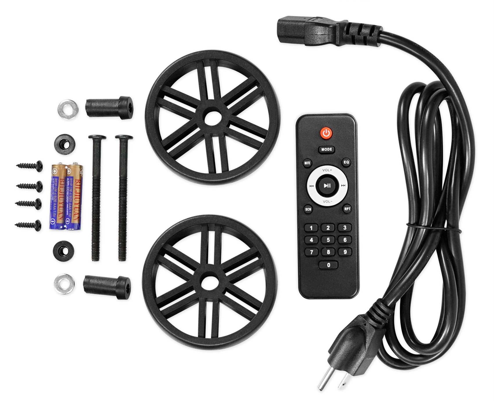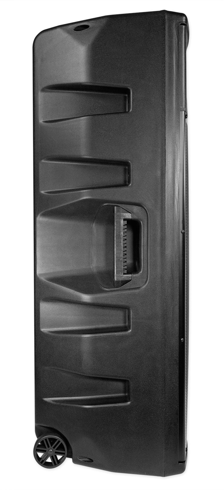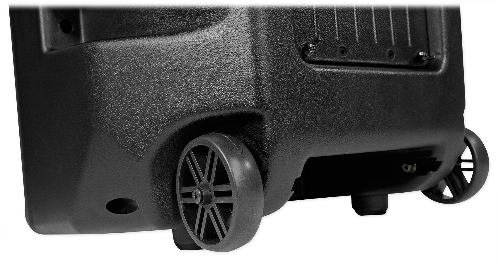 - Each speaker has a trolley handle and wheels making it easy to transport
