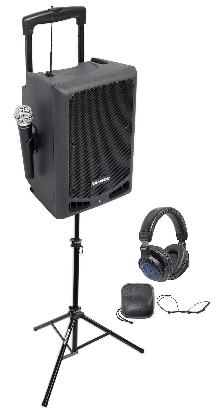 SAMSON Expedition XP108W 8" 200w Bluetooth PA DJ Speaker+Mic+Stand+Headphones