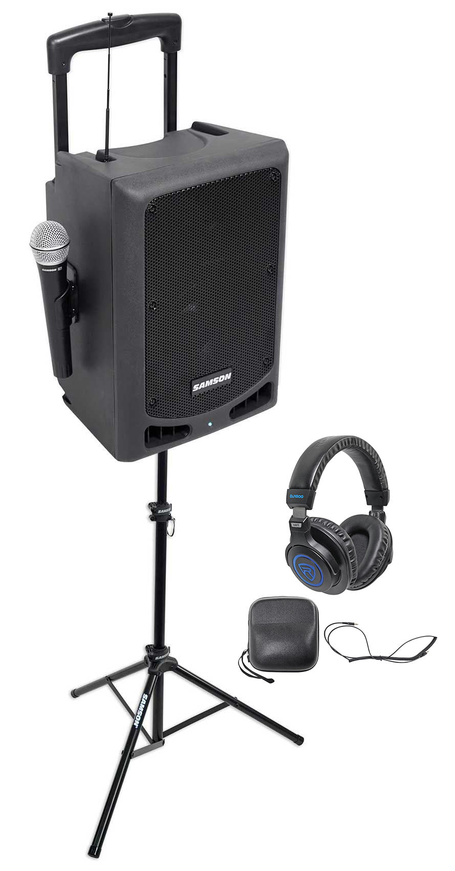 SAMSON Expedition XP108W 8" 200w Bluetooth PA DJ Speaker+Mic+Stand+Headphones