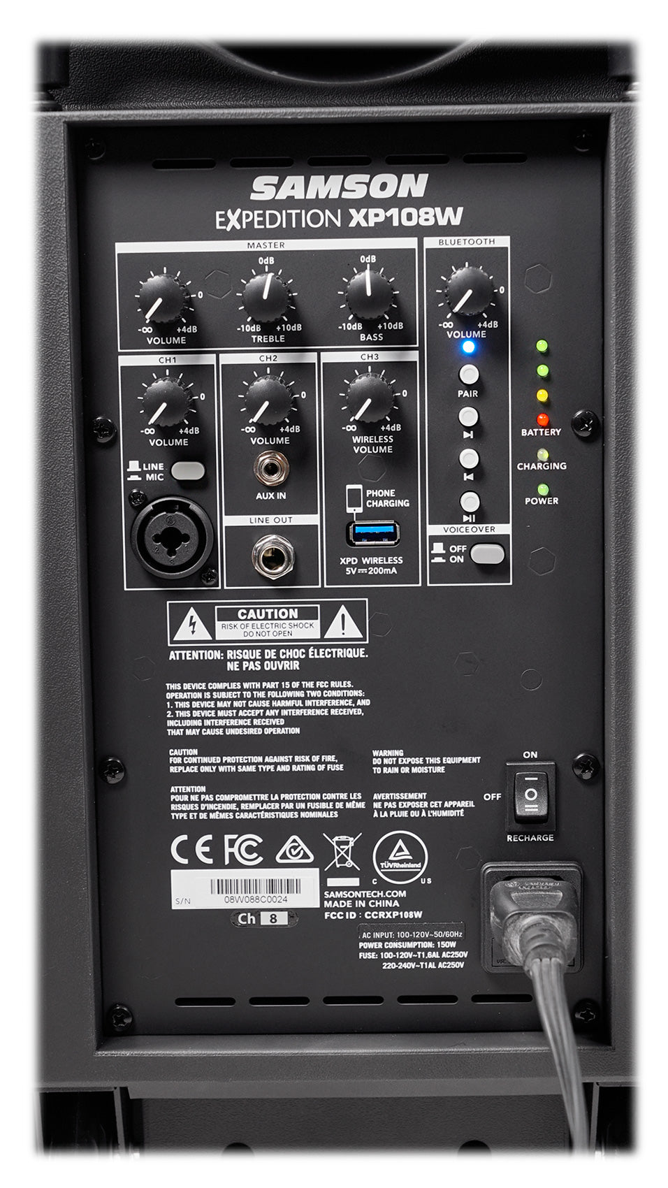 - SAMSON Expedition XP108W 8" 200w Bluetooth Rechargeable Active PA DJ Speaker + Mic