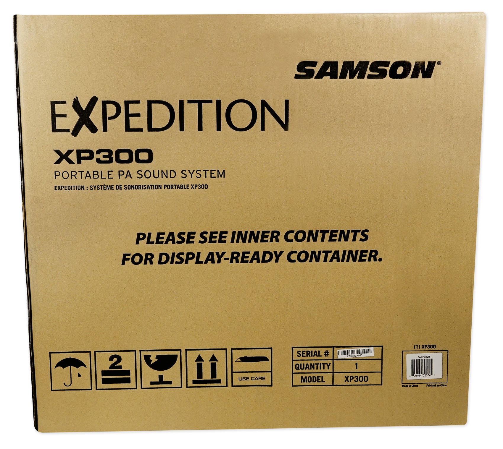 The Samson Expedition XP300 is an all-in-one sound system that offers excellent audio quality with quick and easy setup. Providing 300 watts of power, the XP300 features a lightweight, 6-channel powered mixer and two 6" speakers. For enhanced portability, the XP300 offers a unique speaker-locking design that allows the system and all its components to be packed up and transported as a single unit weighing less than 30 pounds.