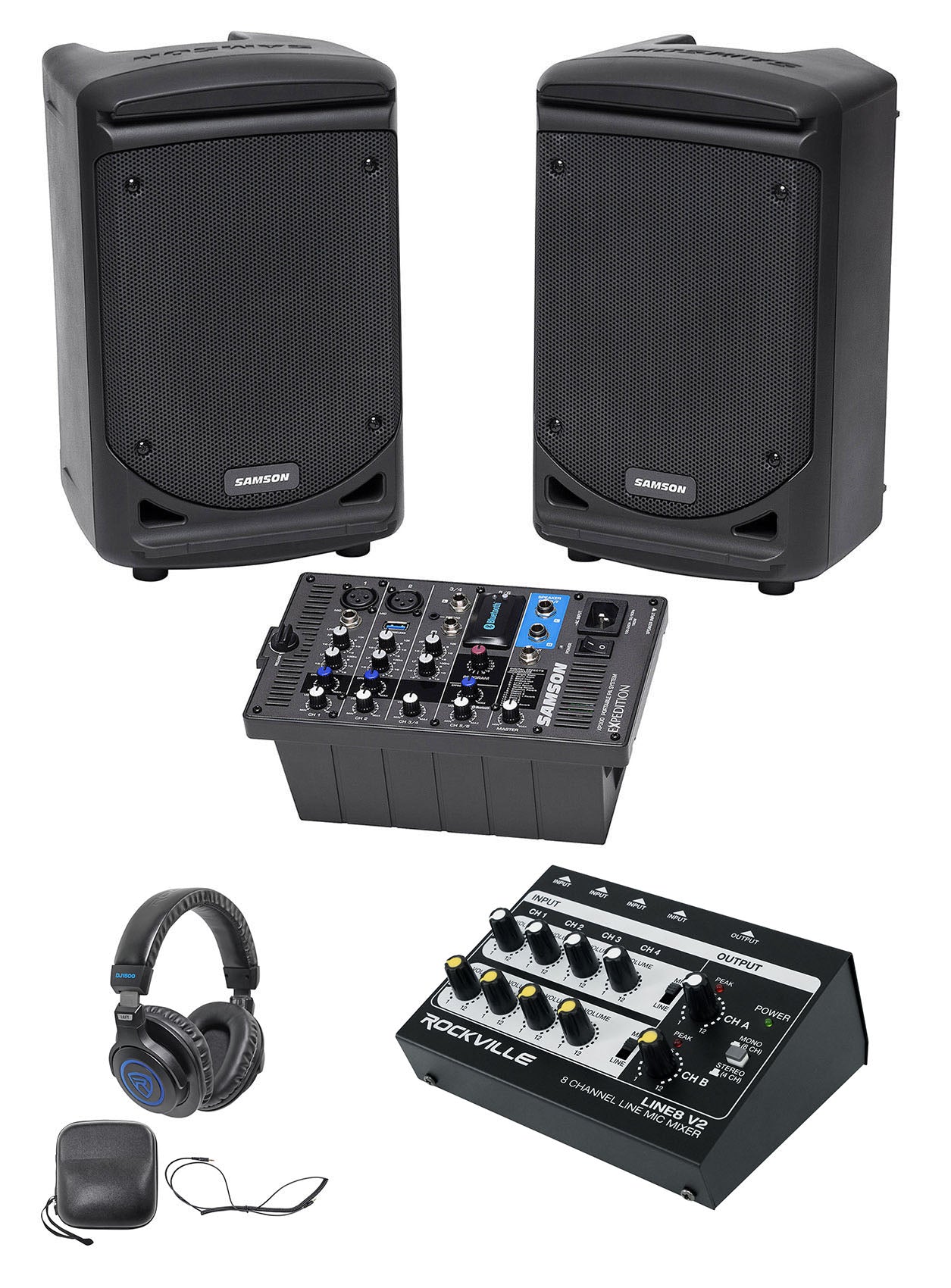 Samson Expedition XP300 300w 6" Bluetooth PA DJ Speakers+(2) Mixers+Headphones