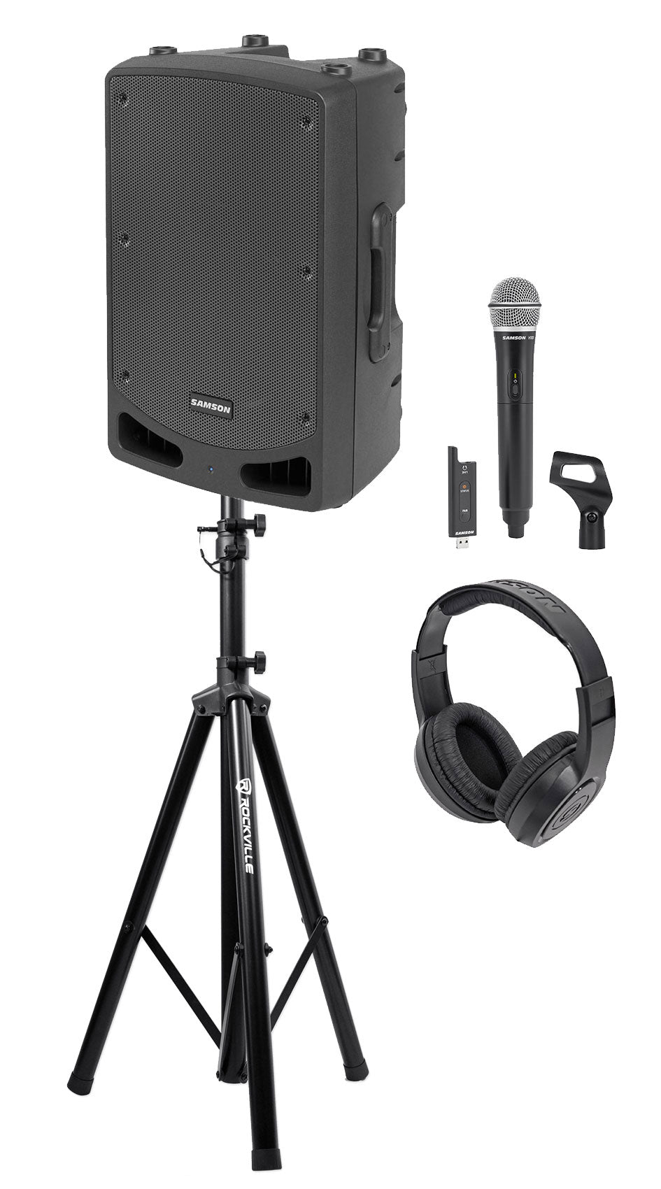 Samson RL115A 15" 800 Watt Powered DJ PA Speaker+Stand+Wireless Mic+Headphones