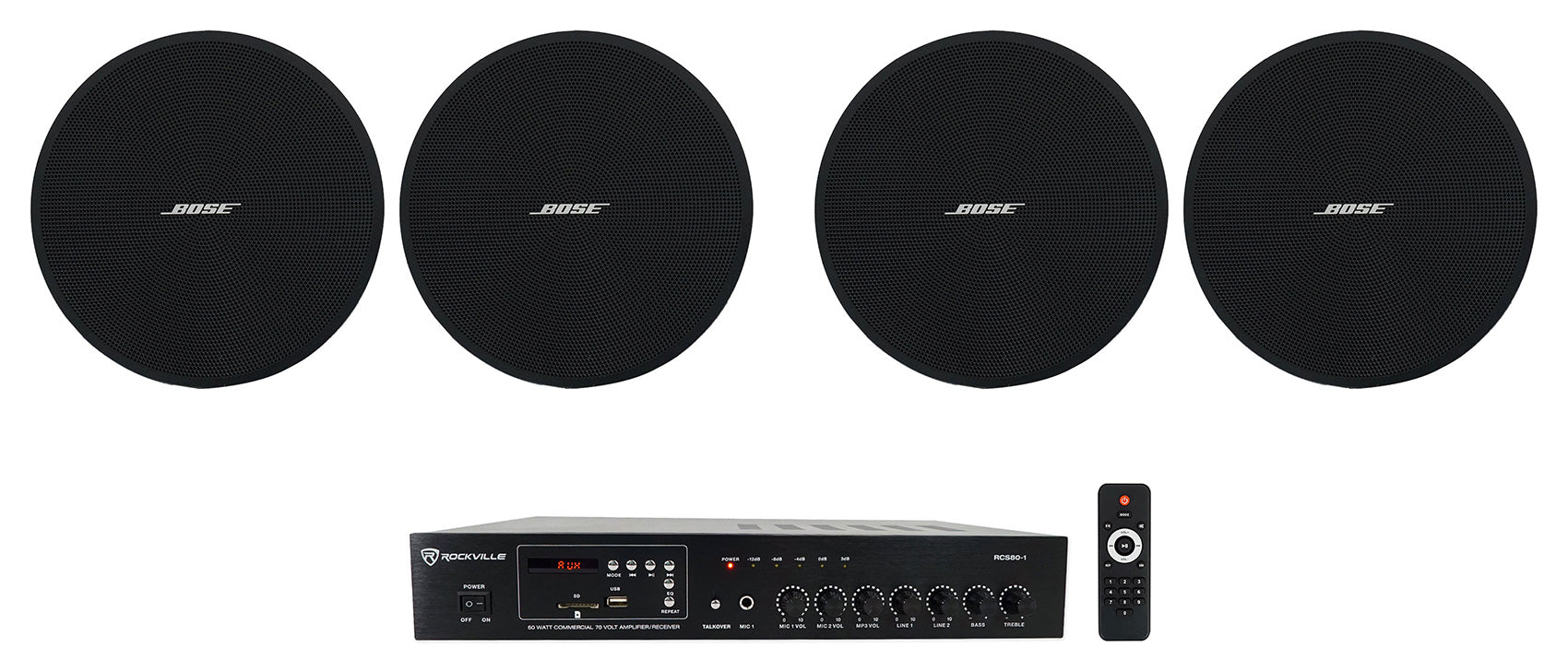 (4) Bose DM2C-LP Black 70V 2.25" Commercial Ceiling Speakers+Amp For Bar/Cafe