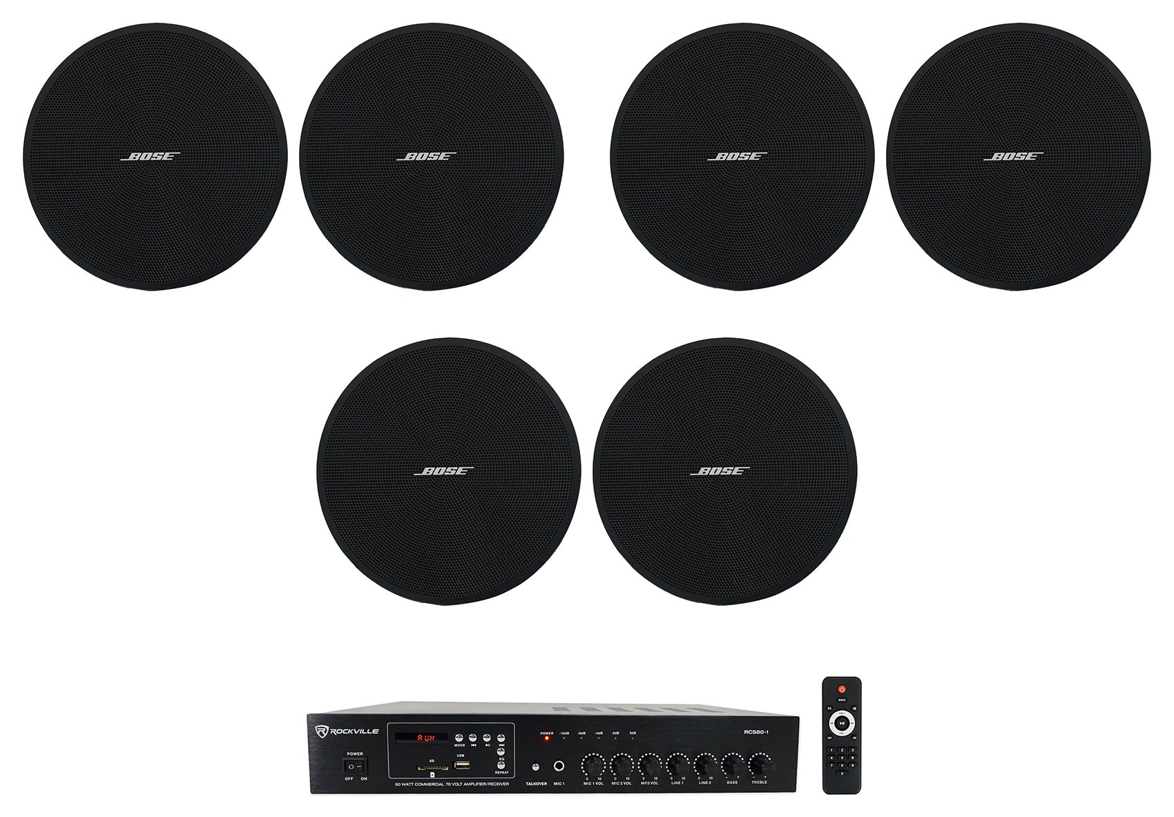 (6) Bose DM2C-LP Black 70V 2.25" Commercial Ceiling Speakers+Amp For Restaurant