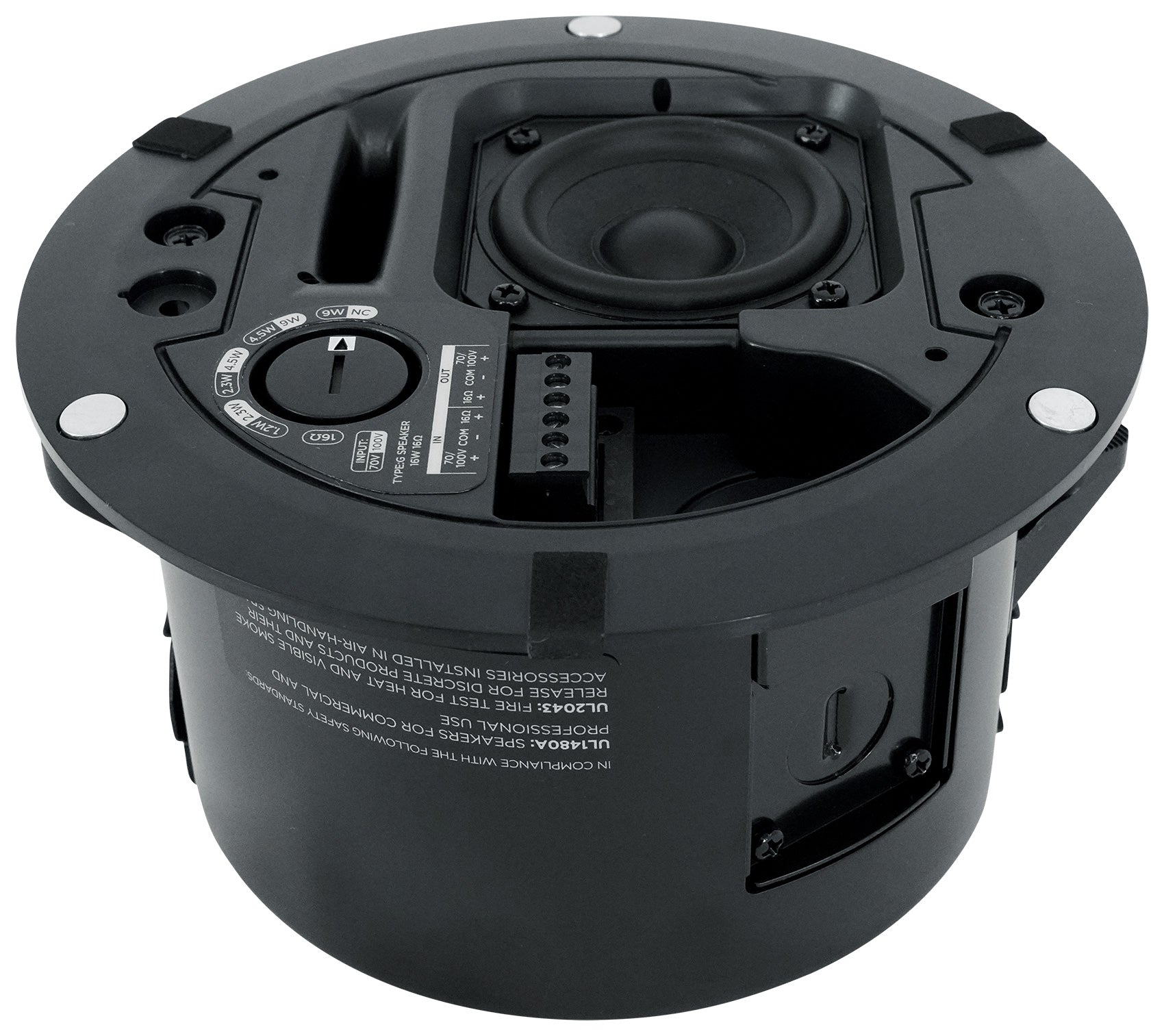 A complete loudspeaker assortment to enhance any space, DesignMax loudspeakers offer rich lows, and clear, intelligible highs — along with premium aesthetics that complement any commercial sound installation. The 20-watt DesignMax DM2C-LP loudspeaker makes it easy to bring great sound to tight spaces. Ideal for background music, the DM2C-LP loudspeaker features a 2.25-inch transducer and 85 Hz – 19 kHz frequency range. The in-ceiling DM2C-LP has a low-profile backcan and is installed easily via QuickHold mounting arms.