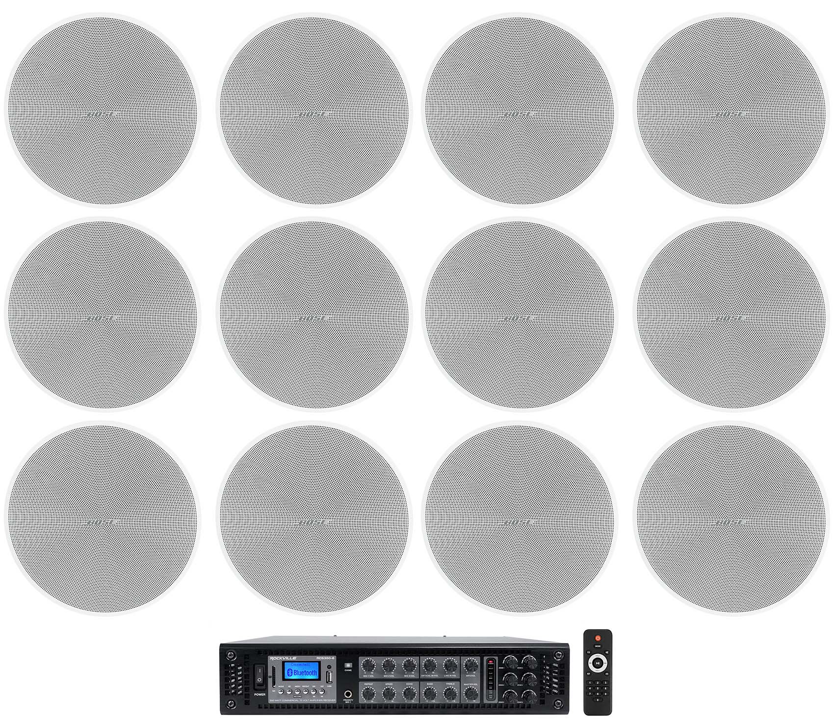 Rockville Commercial Amp+12) Bose DM3C White 70V Ceiling Speakers For Restaurant