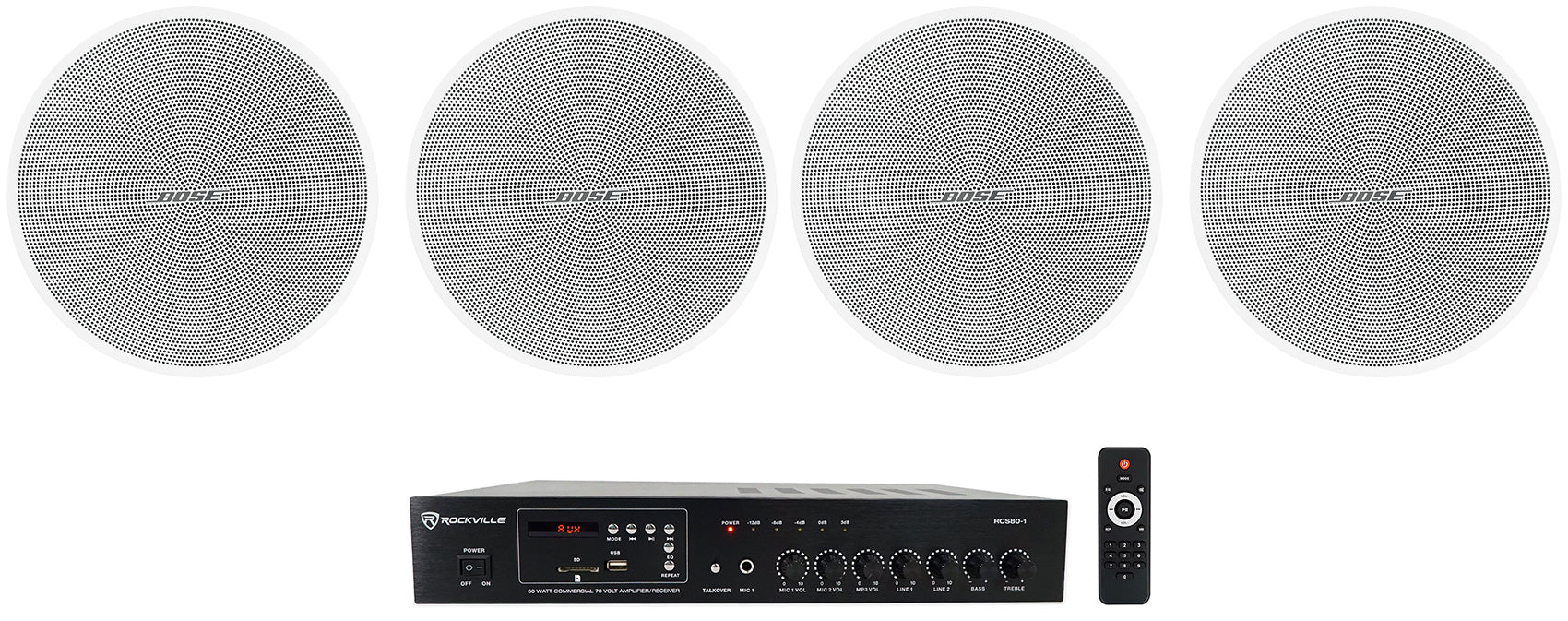 Rockville Commercial Amp+4) Bose DM2C-LP 70V 2.25" Ceiling Speakers 4 Restaurant
