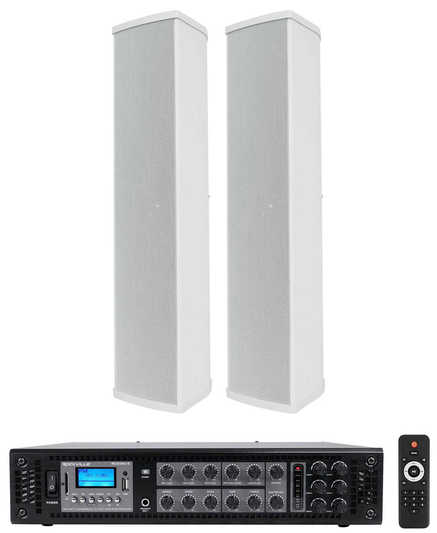 Rockville RCS180-6 70v Commercial Amplifier Amp+(2) Line Array Speakers in White