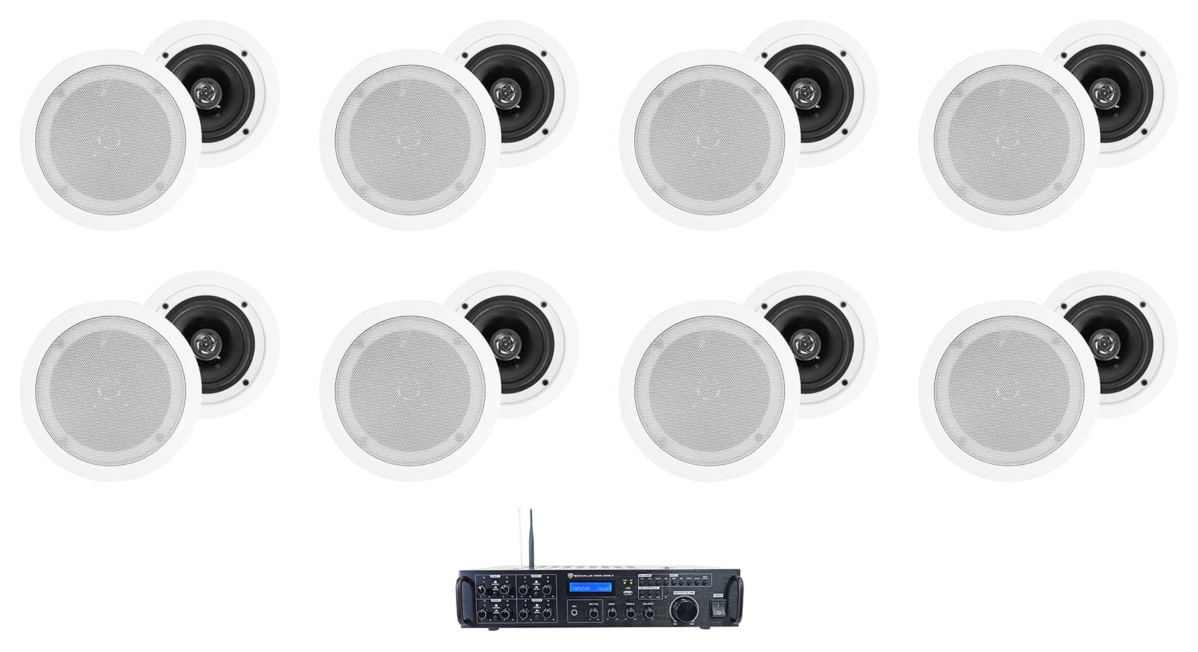 Rockville Rock Zone 8 Receiver+(16) 5.25" White Ceiling Speakers For Restaurant